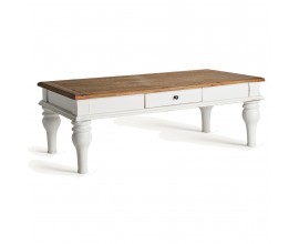 Moderný masívny konferenčný stolík Quadria Blanca z dubivého dreva v off white bielej farbe 68cm