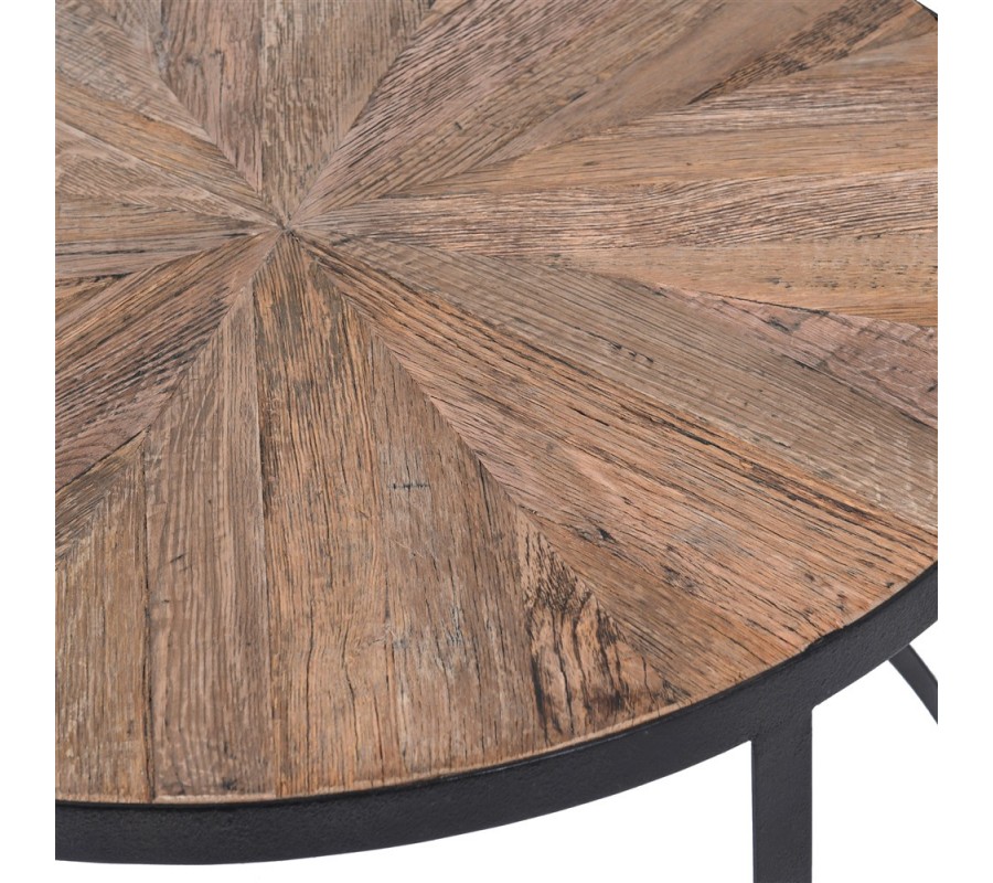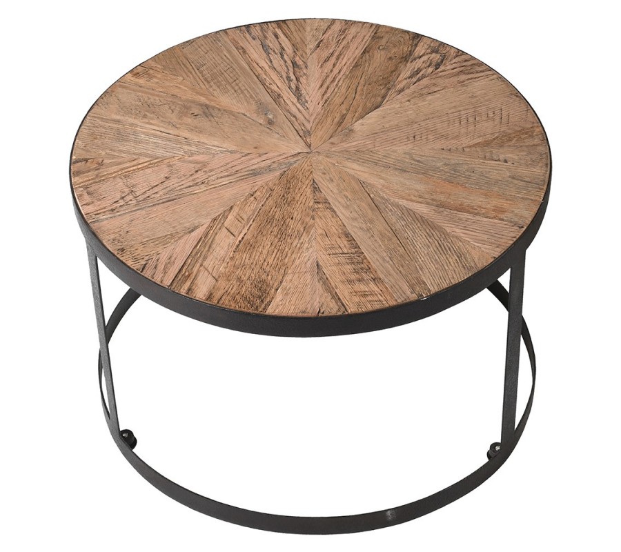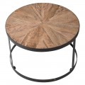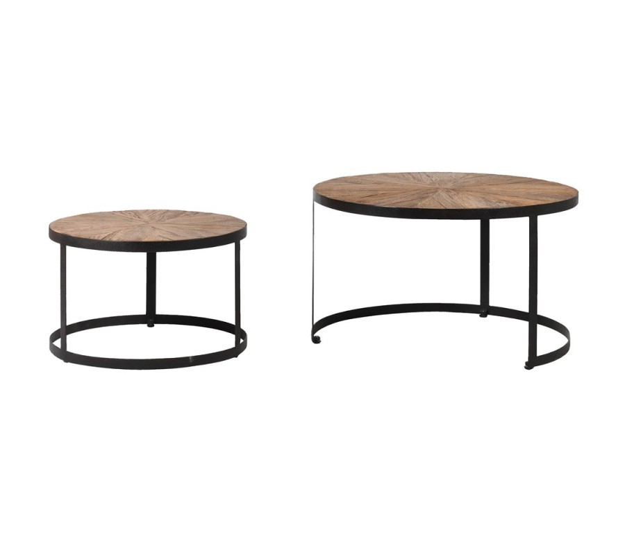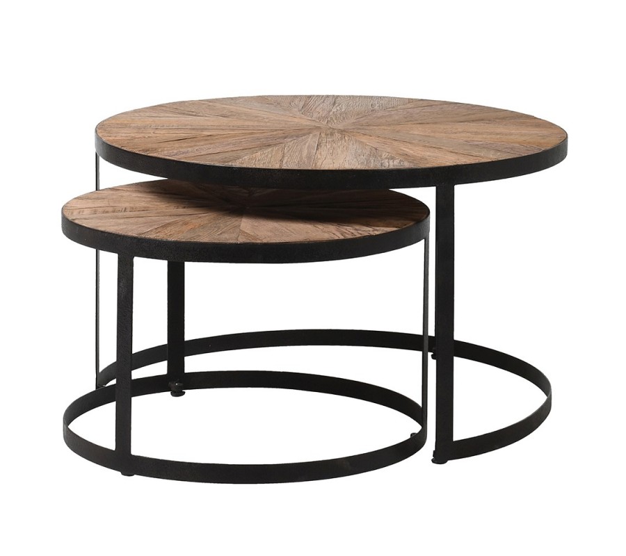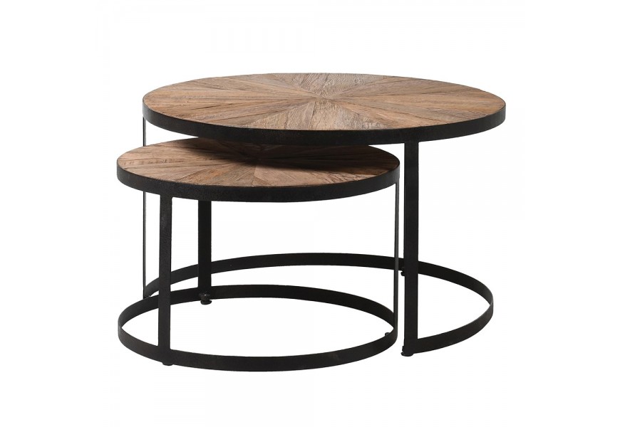 Industriálny hnedý set konferenčných stolíkov Impact z dubového masívu s čiernou kovovou podstavou okrúhly 80cm