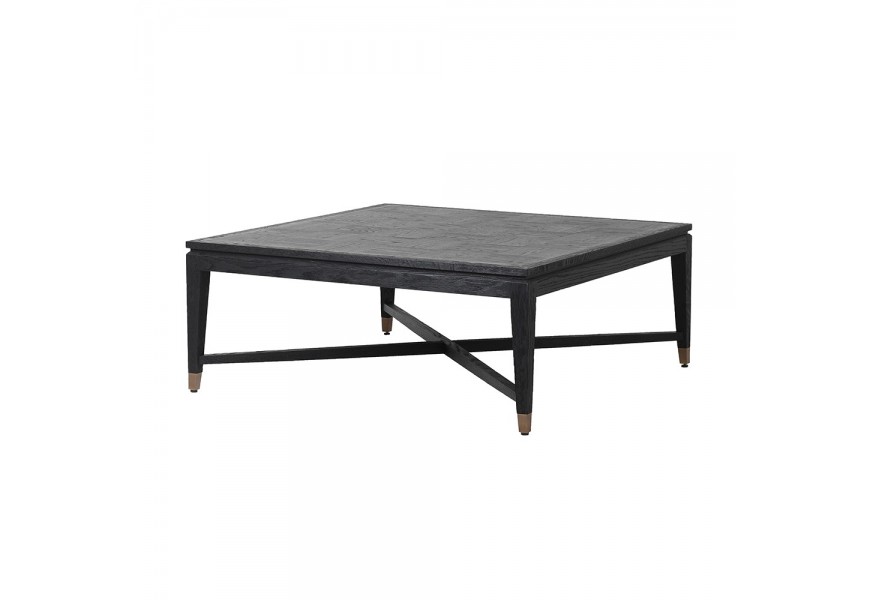 Luxusný art deco štvorcový konferenčný stolík Emperor z masívneho dubového dreva čiernej farby 110cm