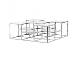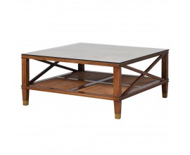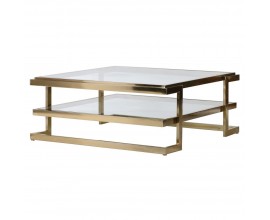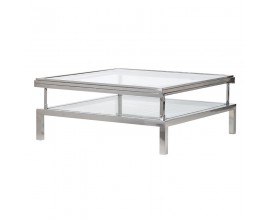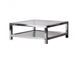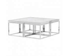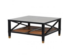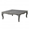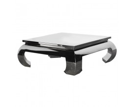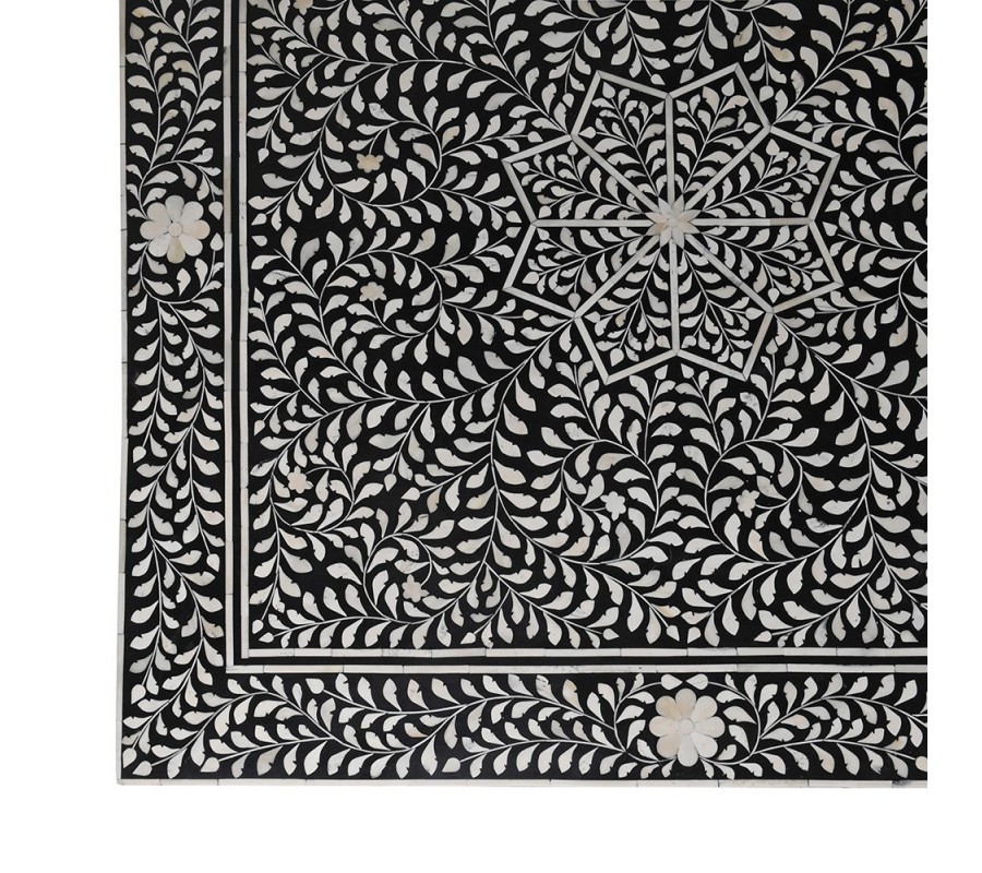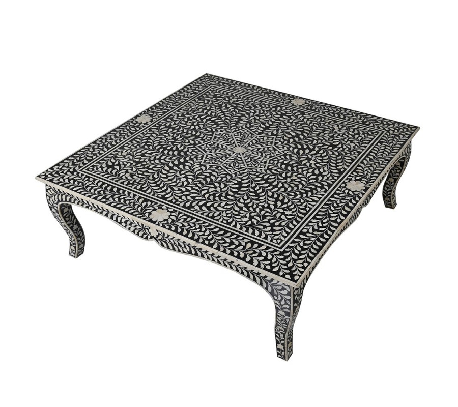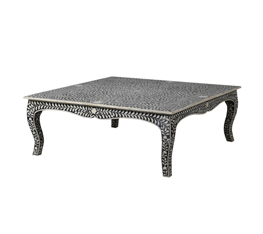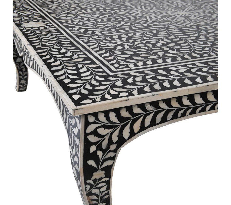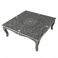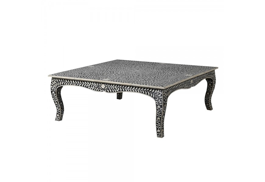 Luxusný štvorcový konferenčný stolík Garibaldi čierno-bielej farby s florálnou intarziou a vyrezávanými nožičkami 112cm