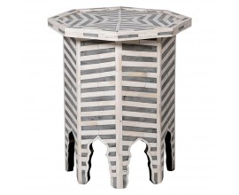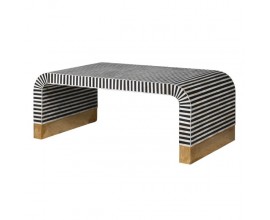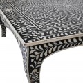 Exkluzívny konferenčný stolík Garibaldi si vás získa predovšetkým svojím originálnym vzhľadom vo vintage štýle. Jeho dominantou je nádherné zdobenie tvorené technikou intarzie, pričom kombinuje materiály masívneho mangového dreva, ťavej kosti a živice. Týmto precíznym zdobením vzniká štýlový florálny vzor tvorený ukladaním jednotlivých kúskov materiálu vedľa seba. Farebná kombinácia čiernej a bielej dodáva stolíku Garibaldi štýlový retro efekt. Detailné a precízne zdobenie pokrýva celú vrchnú dosku, bočné strany aj jemne zaoblené elegantné nožičky umocňujúce vintage vzhľad. Konferenčný stolík Garibaldi nádherne doplní retro alebo vintage zariadené obývačky, ale aj priestory tématicky ladených kaviarní, čajovní alebo štýlových firiem či hotelov. Doplnením výraznej čalúnenej sedačky či kresla a ďalších kúskov nábytku z masívneho dreva možno umocniť efekt štýlu vintage a vytvoriť tak nádhernú útulnú atmosféru domova!