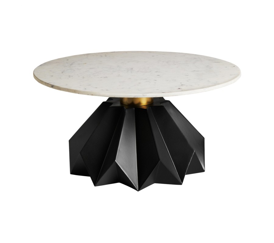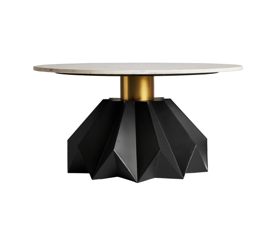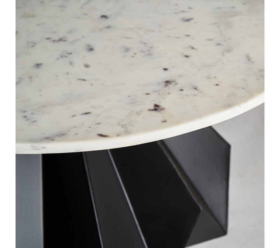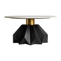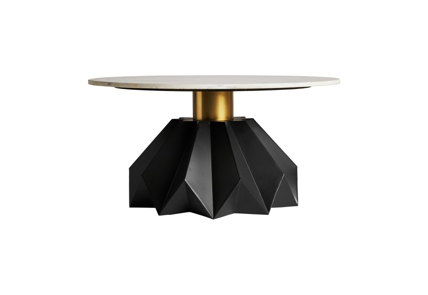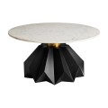 Luxusný art deco konferenčný stolík Evarista s čiernou podstavou a bielou okrúhlou vrchnou doskou z mramoru 80cm