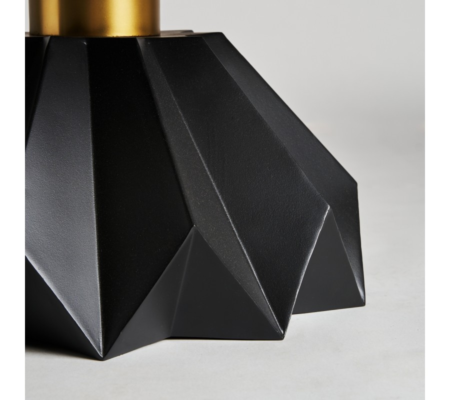 Extravagantný konferenčný stolík Evarista sa poľahky stane dominantou každej art deco ladenej obývačky. Výrazným prvkom jeho dizajnu je tvarovaná geometrická konštrukcia z kovu nesúca sa v čiernej farbe, ktorú dopĺňa zlatá stredová časť. K podstave kontrastne pôsobí kruhová vrchná doska z mramoru bielej farby s jemnými sivými vzormi. Farebná a tvarová kombinácia robí zo stolíka Evarista dokonalým kúskom do glamour a art deco interiérov. Vkusne doplní vašu obývačku, ale predstavuje tiež efektné riešenie do luxusných kaviarní či barových priestorov. Konferenčný stolík Evarista odporúčame kombinovať so zlatými doplnkami a čalúnenou zamatovou sedačkou či kreslom. Pre umocnenie art deco efektu môžete tiež vyskúšať kombináciu so zrkadlovými prvkami, výraznými závesmi alebo koberčekom s vysokým vlasom.