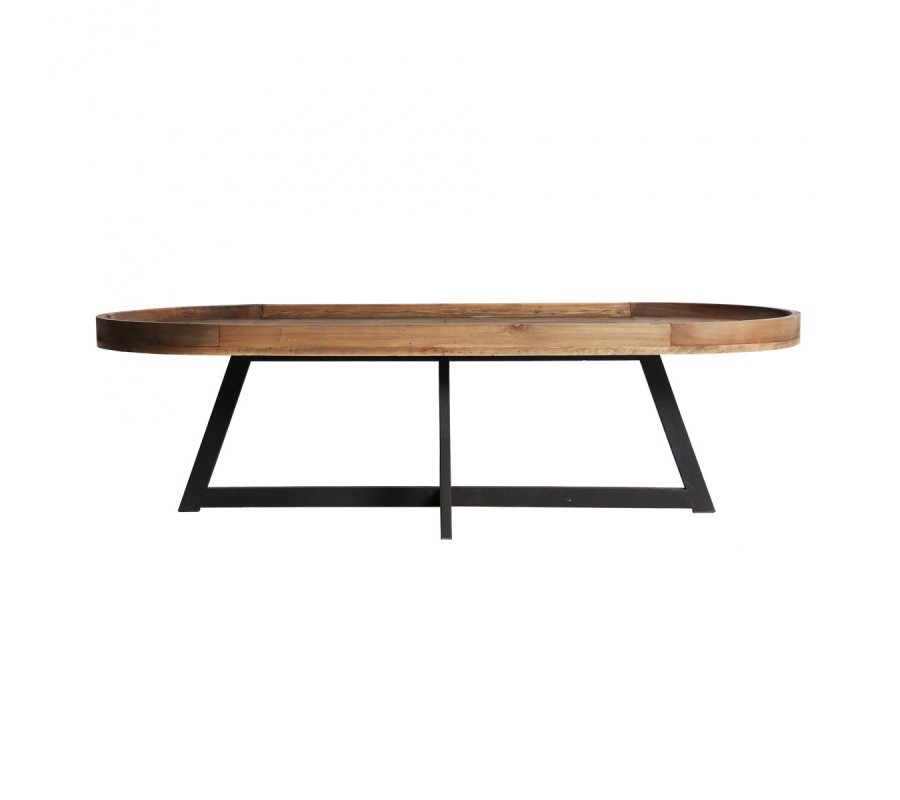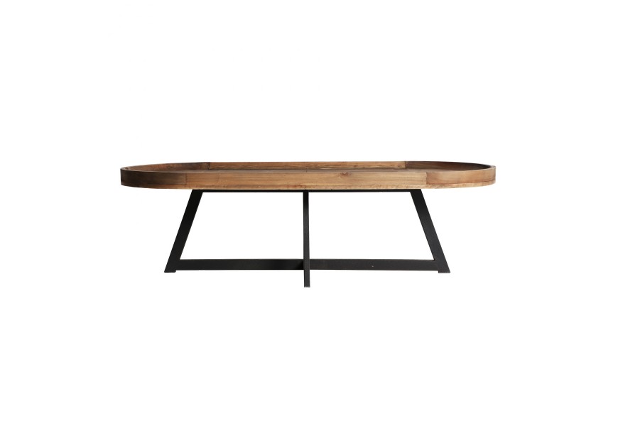 Industriálny oválny konferenčný stolík Sofia s čiernou kovovou konštrukciou a prírodnou hnedou masívnou doskou 140cm