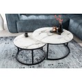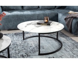 Konferenčný mramorový industriálny stolík Benjamin II okrúhleho tvaru s čiernou kovovu konštrukciou 80cm