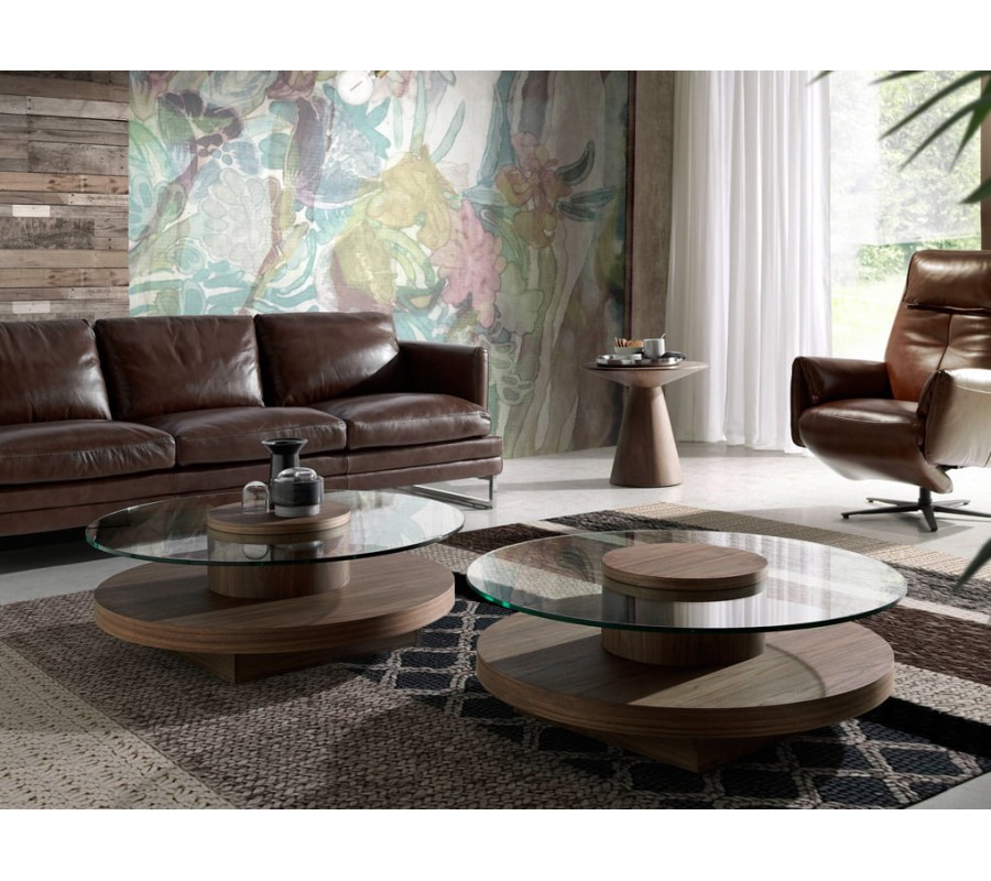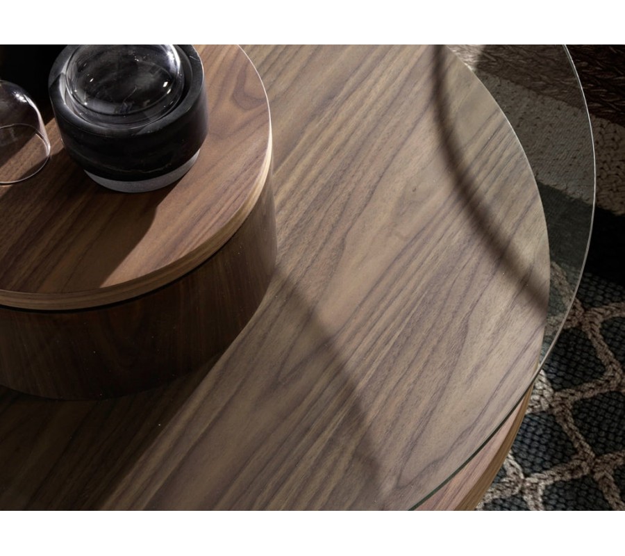 Dodajte Vášmu interiéru nádych sofistikovanosti a luxusu s moderným konferenčným stolíkom z kolekcie Vita Naturale. Bohatý taliansky dizajn stolíka je dosiahnutý vďaka kombinácií okrúhlej vrchnej dosky z 10mm hrubého tvrdeného skla s fazetovým okrajom a konštrukcie z dreva, dyhovaného orechom v prírodne hnedej farbe.