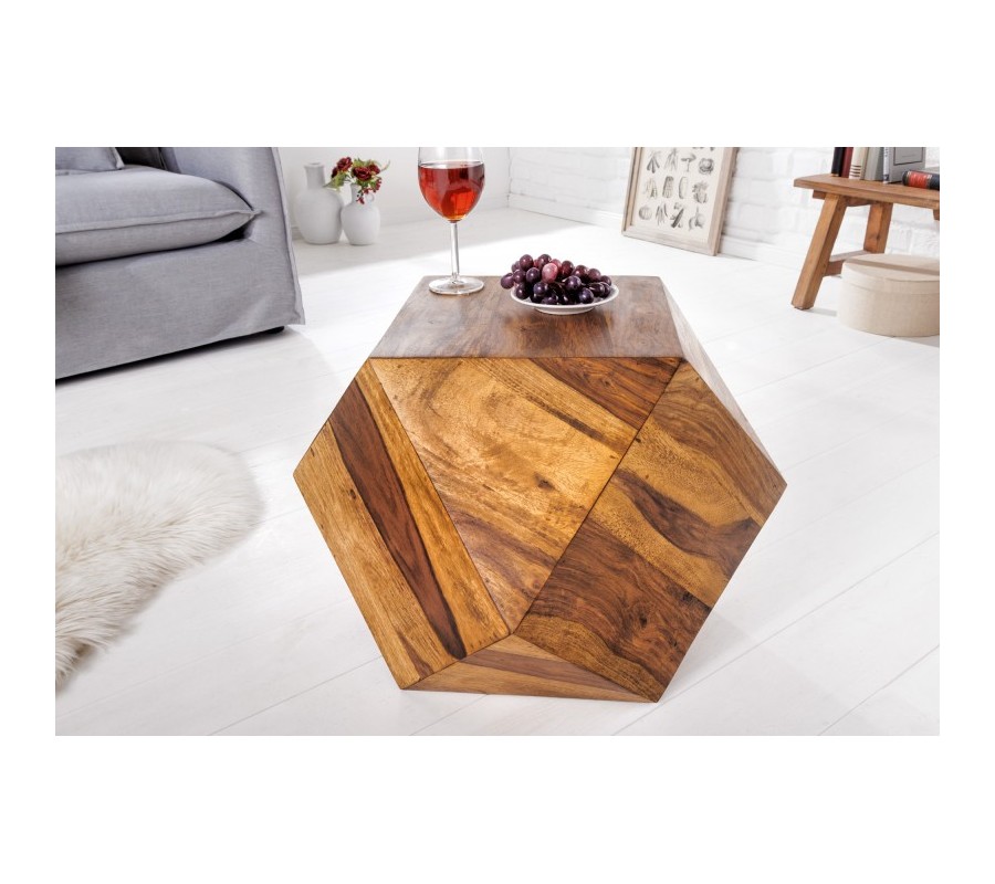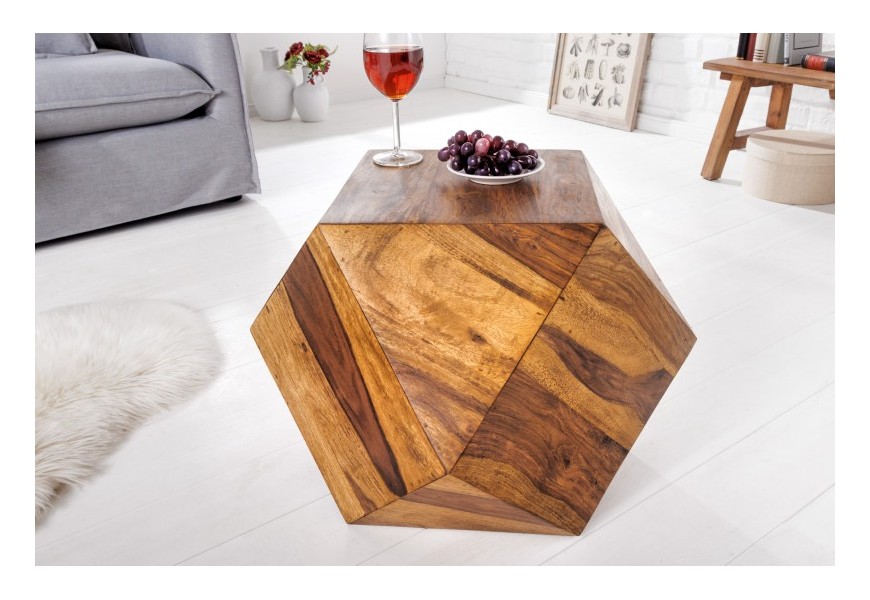 Štýlový masívny konferenčný stolík Ronan v tvare diamantu z palisandrového dreva hnedej farby 42cm