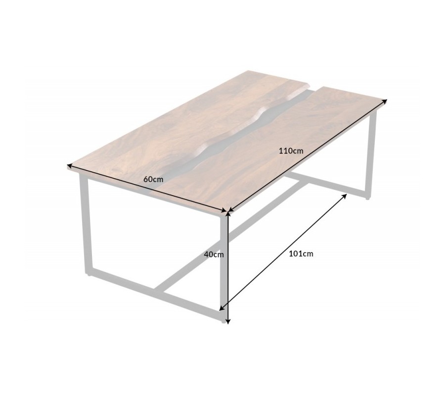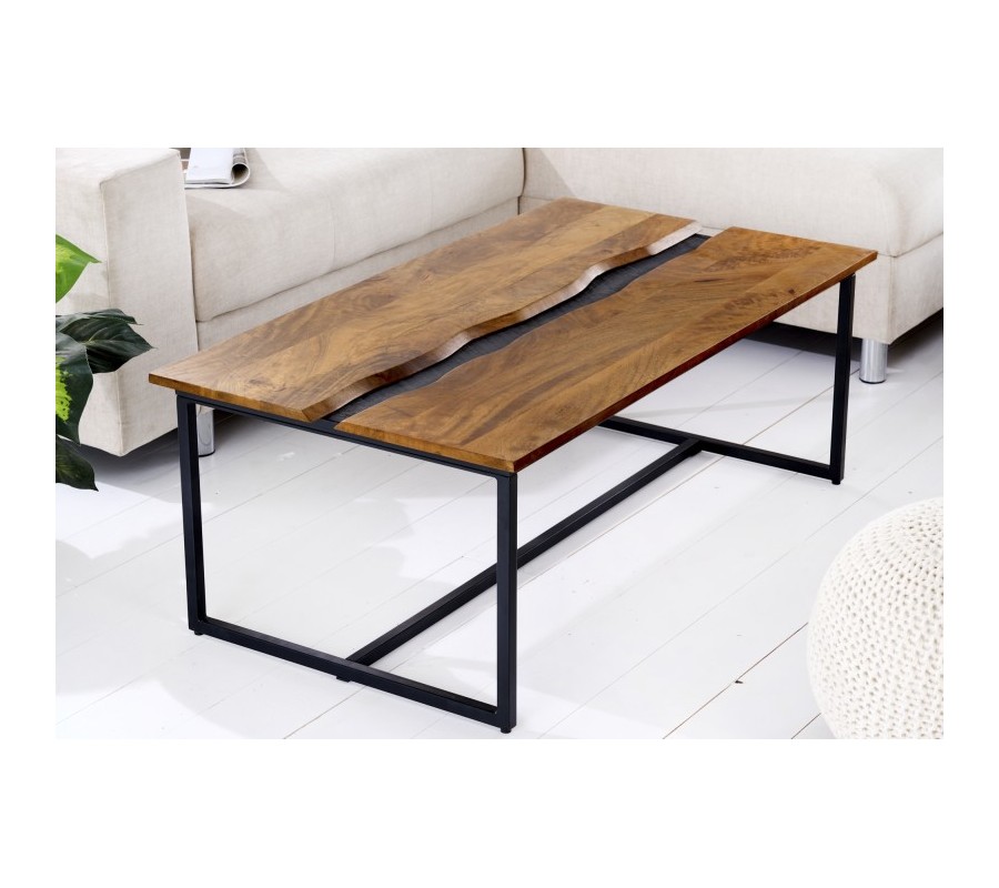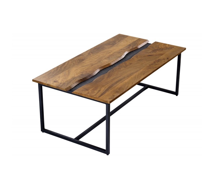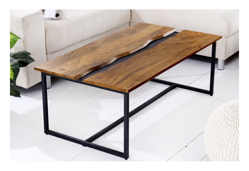 Masívny konferenčný stolík Amazonas s čiernou kovovou konštrukciou a obdĺžnikovou doskou z mangového dreva 110cm