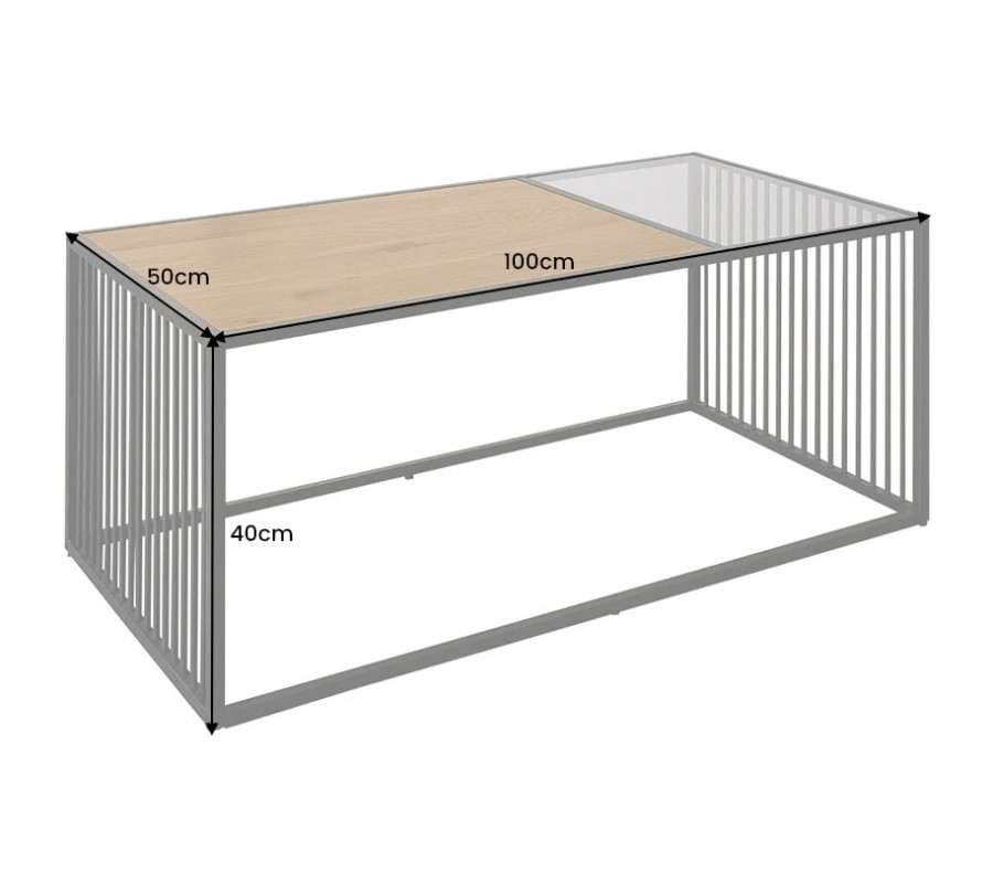 Elegantný a sofistikovaný dizajn konferenčného stolíka z kolekcie Westford poteší všetky zmysly a zaujme aj tých najnáročnejších zákazníkov. Konštrukcia je vyrobená z pevného kovu v čiernej farbe a spolu s piliermi po bokoch poskytuje dokonalú stabilitu a spoľahlivosť prevedenia. Vrchná doska stolíka v tvare obdĺžnika je pomyselne rozdelená na dve časti: bezpečnostné sklo je na jednej časti povrchovo upravené, tak, že vytvára dojem dubového dreva v prírodnej farbe zatiaľ, čo zvyšok je priesvitný s čiernym nádychom. Konferenčný stolík Westford bude výbornou voľbou do industriálne ladených obývačiek, vstupných hál či do elegantných pánskych biznis priestorov v podobe recepcií či lobby barov. Nadčasové farebné prevedenie poteší nielen milovníkov neutrálnej farbenej palety, ale aj milovníkov žiarivých pestrých farieb od zelenej do žltú. Svoje miesto si nájde v súčastných a industriálnych aj menej priestranných interiéroch.