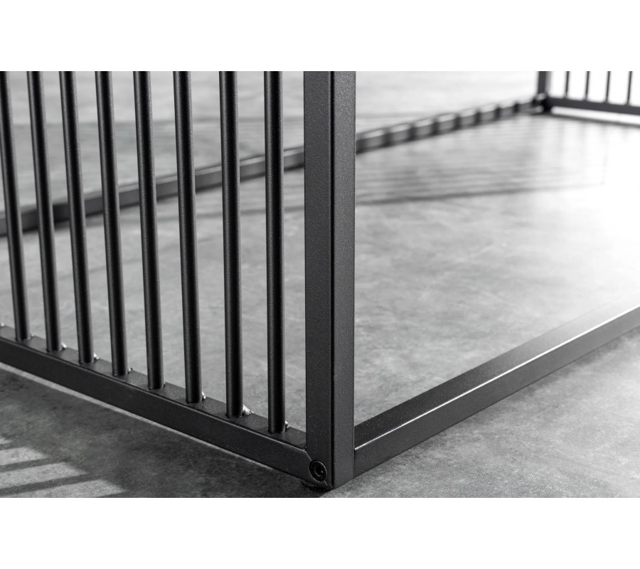 Industriálny konferenčný stolík Westford s kovovou čiernou konštrukciou a vrchnou doskou zo skla 100cm
