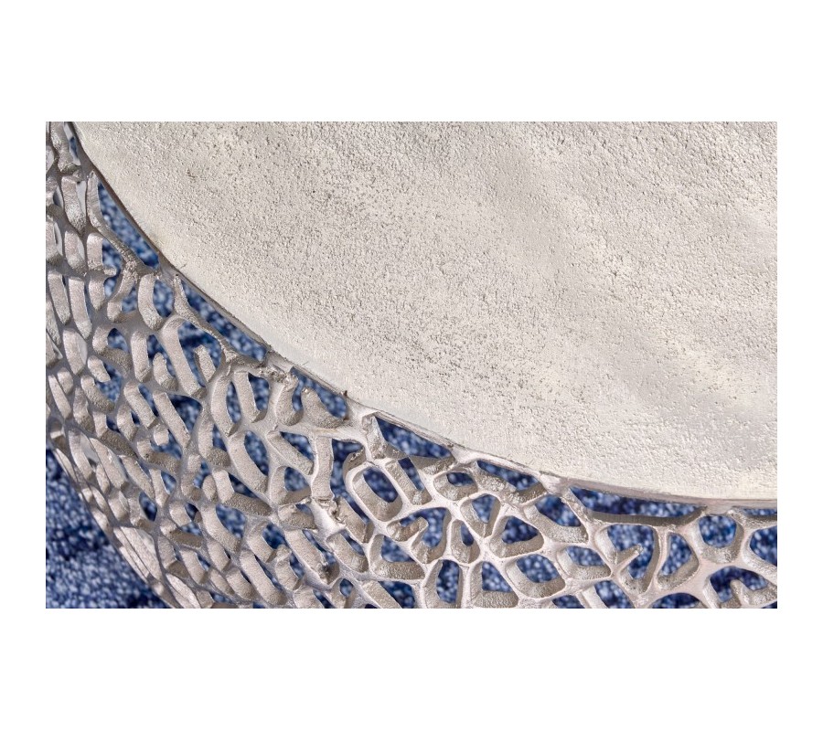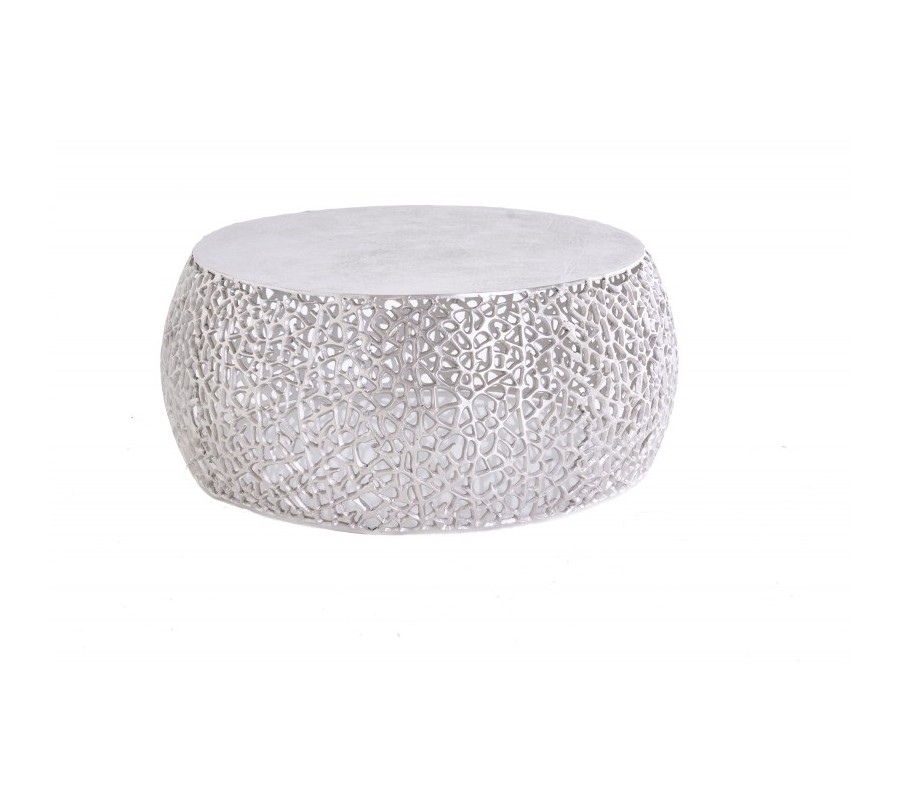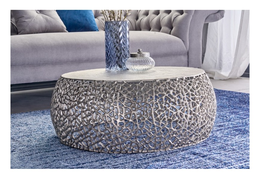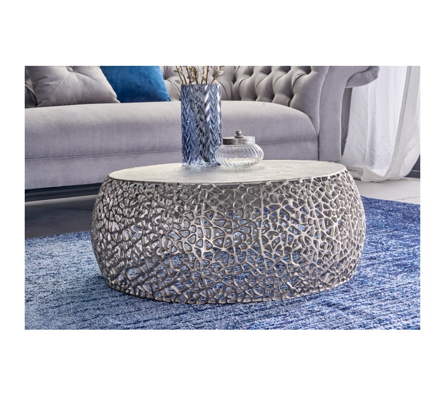 Doplňte svoje priestory konferenčným stolíkom Hoja a vytvorte si tak unikátny glamour efekt! Jedinečný dizajn tohto stolíka spočíva predovšetkým v organickom okrúhlom tvare a sieťovitej konštrukcii pripomínajúcej štruktúru listu. Stolík je vyrobený z kovu a nesie sa v elegantnej striebornej farbe, ktorá skvelo zapadne do tmavších, ale i svetlejšie ladených interiérov. Unikátny dizajn konferenčného stolíka Hoja dodá vášmu interiéru vzdušný efekt a elegantný glamour nádych. Dokonalú kombináciu vytvorí s tmavozelenou, striebornou či tmavomodrou čalúnenou sedačkou alebo kreslom, rovnako ako aj s nábytkom z kovu či skla. Okrem dizajnových obývačiek predstavuje tiež skvelé riešenie do priestorov beauty salónov, luxusných glamour hotelových lobby barov či reprezentatívnych firemných priestorov.