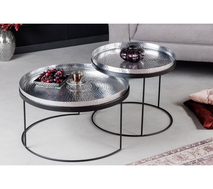 Art-deco set okrúhlych konferenčných stolíkov Elements strieborná 57cm