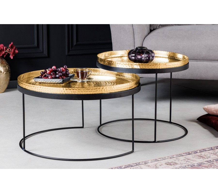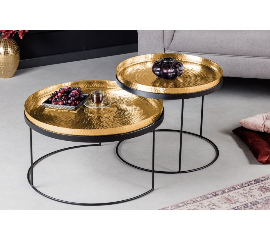 Art-deco set okrúhlych konferenčných stolíkov Elements zlatá 57cm