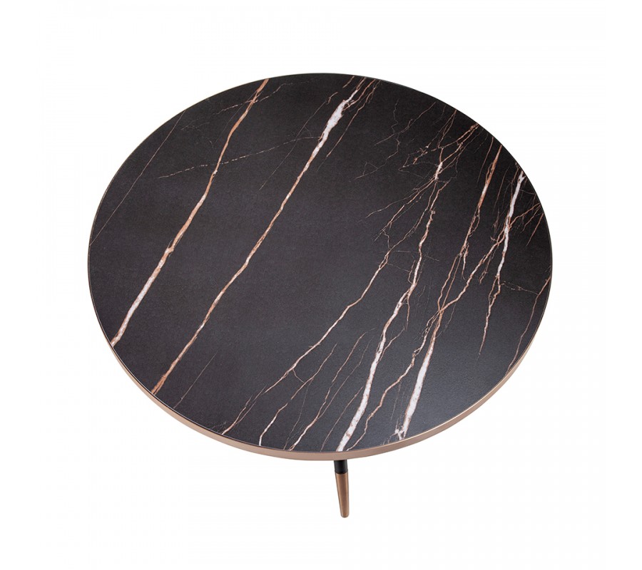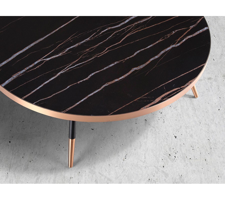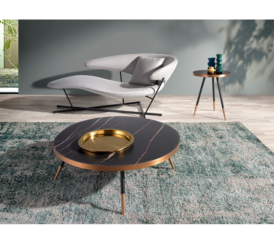 Dizajn je kľúčovým prvkom tohto štýlového nábytku, preto je kladený dôraz na každý detail. Najdominantnejším prvkom stolíka Forma Moderna je jeho okrúhla vrchná doska z porcelánu, ktorá sa pýši kvalitnou mramorovou povrchovou úpravou v čiernej farbe, čo vyzdvihne jeho luxusný a nadčasový vzhľad.
