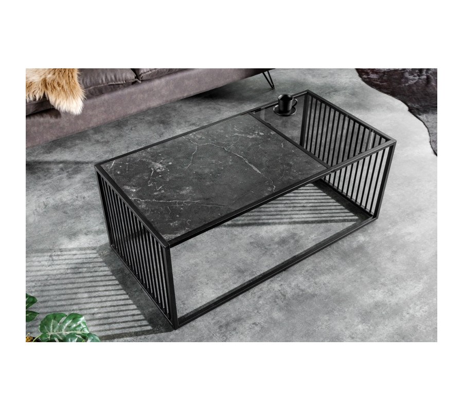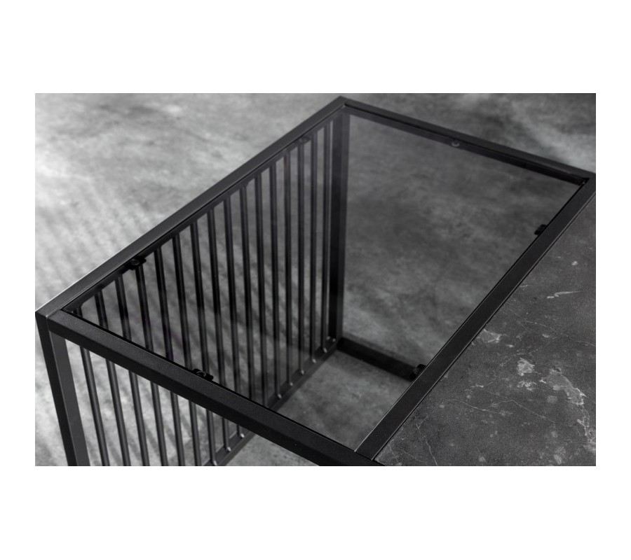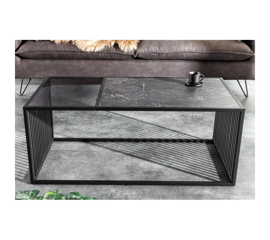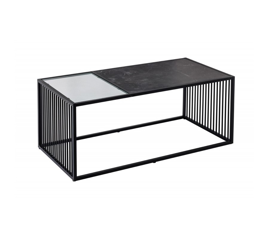 Ak hľadáte štýlový i praktický kúsok do vašej industriálne ladenej obývačky, ste na správnom mieste! Konferenčný stolík Westford obdĺžnikového tvaru sa vďaka svojmu dizajnovému prevedeniu bude vo vašich priestoroch krásne vynímať a nebudete mať problém s jeho doladením. Je vyrobený z kovovej konštrukcie v matnom čiernom prevedení a vrchnej dosky, ktorú z bočných strán podopiera niekoľko pilierov zabezpečujúcich dokonalú stabilitu a pevnosť prevedenia. Doska pozostáva z dvoch častí, pričom väčšia disponuje zaujímavým mramorovým efektom a menšia časť je vyrobená zo skla, čím vzniká zaujímavý moderný efekt. Vďaka univerzálnej čiernej farbe a neutrálnemu prevedeniu je konferenčný stolík Westford výborným riešením nielen do monochromaticky, ale i pestrejšie ladených priestorov, ktoré potrebujú stlmiť. Svoje miesto si nájde v industriálne ladených obývačkách v spoločnosti čalúnenej sedačky v kontrastnej farbe či dizajnového kovového príborníka.