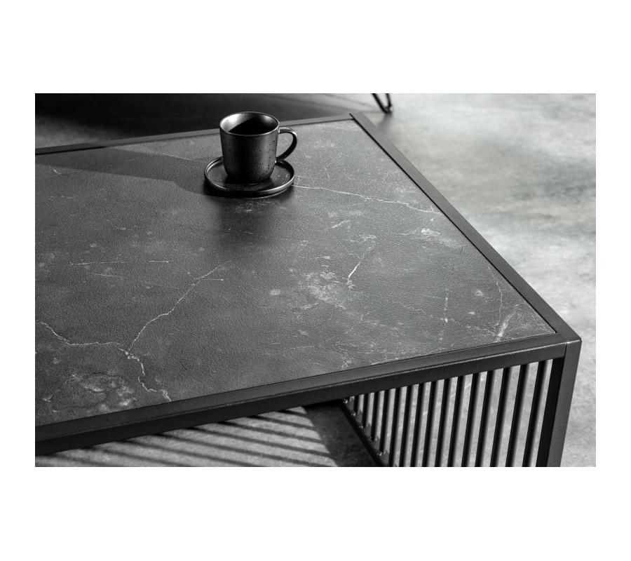 Industriálny konferenčný stolík Westford z kovu čiernej farby s mramorovou doskou 100cm