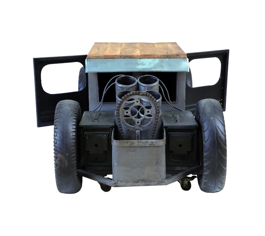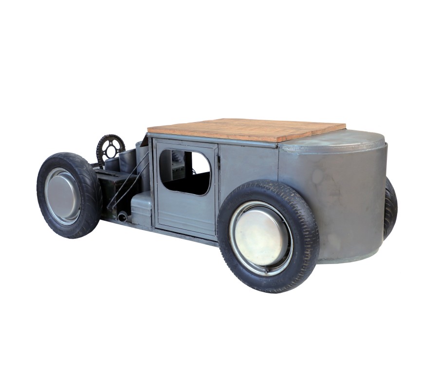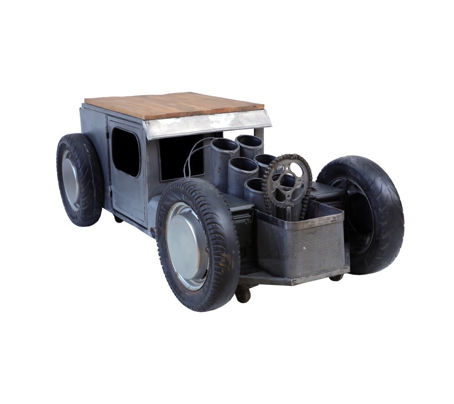 Jedinečný dizajn konferenčného stolíka Malcom zaujme predovšetkým milovníkov staržitností a dizajnových vozidiel. Jeho podstavu tvorí podobizeň starého vozidla z kovu v čiernej farbe s patinou vytvárajúcou nezameniteľný vintage vzhľad. Autentický vzhľad vozidla pozostáva z kolies, dvierok aj mechanických súčiastok vytvárajúcich industriálny efekt. Vrchná doska z masívneho mangového dreva sa nesie v hnedej farbe a vytvára tak štýlový kontrast. Konferenčný stolík vo vašej obývačke zaručene vynikne a bude pôsobiť dominantným dojmom. Odporúčame ho umiestniť aj do tématicky ladených kaviarní či barových priestorov v kombinácii s tmavou koženou sedačkou alebo kreslami.