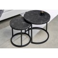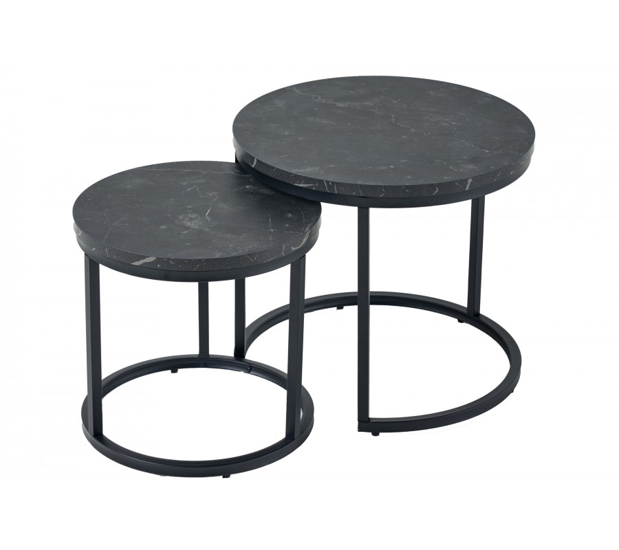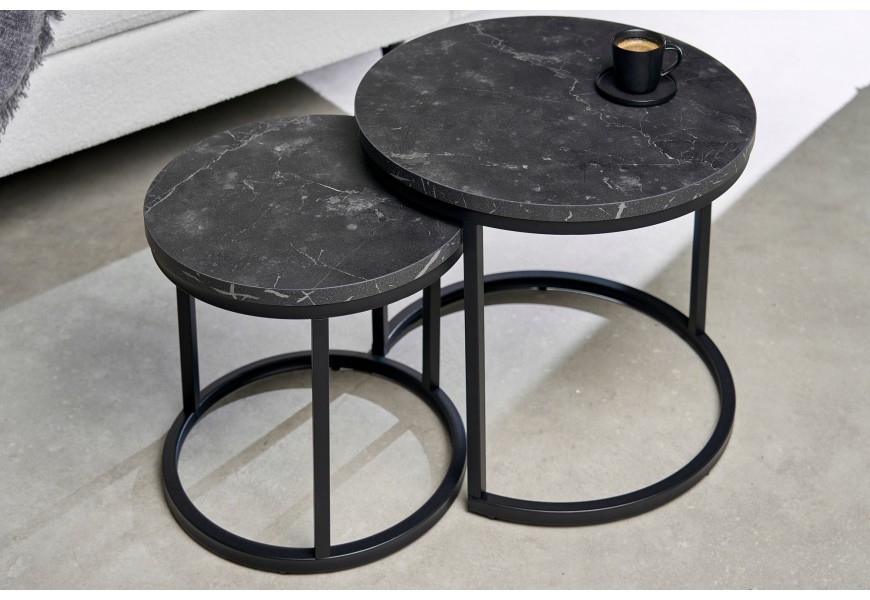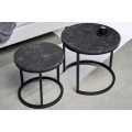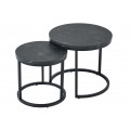 Industriálny set dvoch konferenčných stolíkov Nadja v čiernom prevedení z kovu a dreva s mramorovým vzhľadom