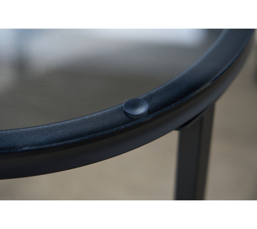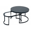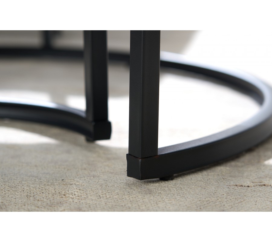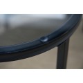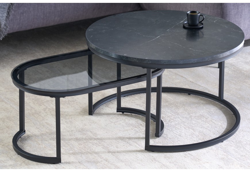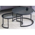 Dizajnový set dvoch industriálnych konferenčných stolíkov v čiernom prevedení Nadja z kovu, dreva a skla