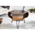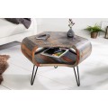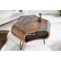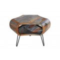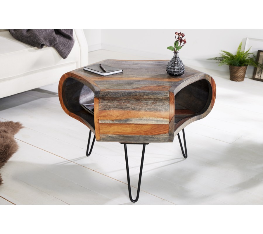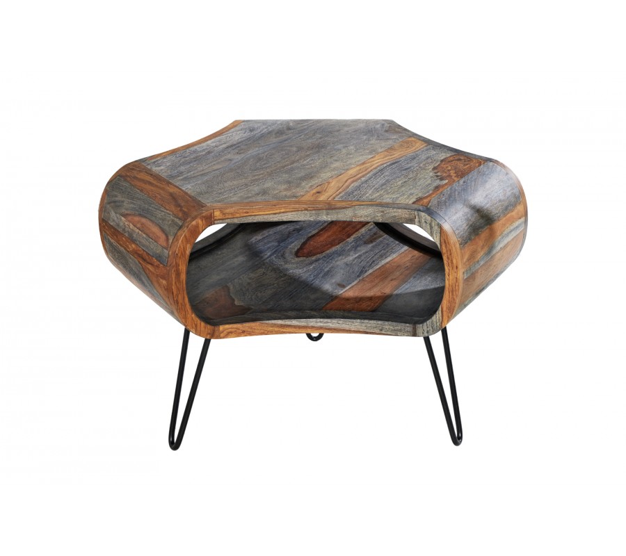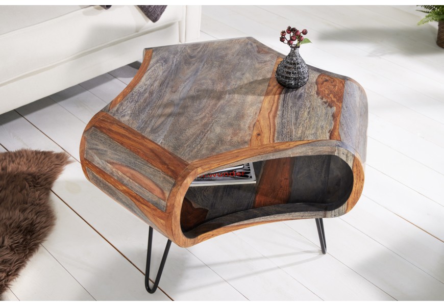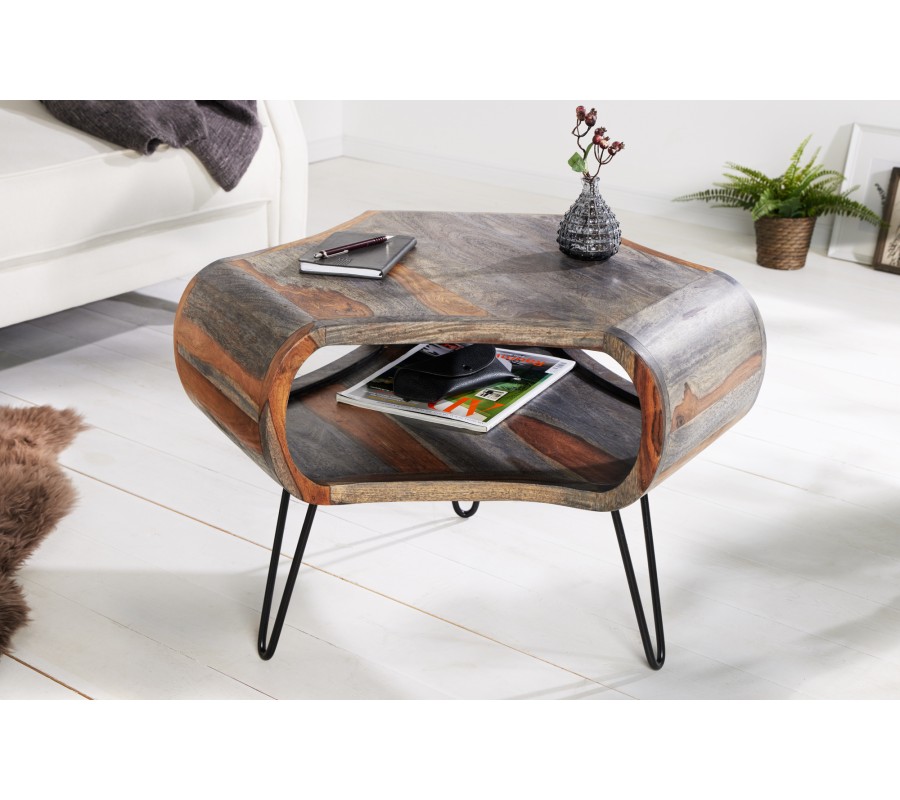 Masívny retro konferenčný stolík Spin III s oblými rezanými tvarmi zo sheesham dreva v hnedo-sivom prevedení 70cm