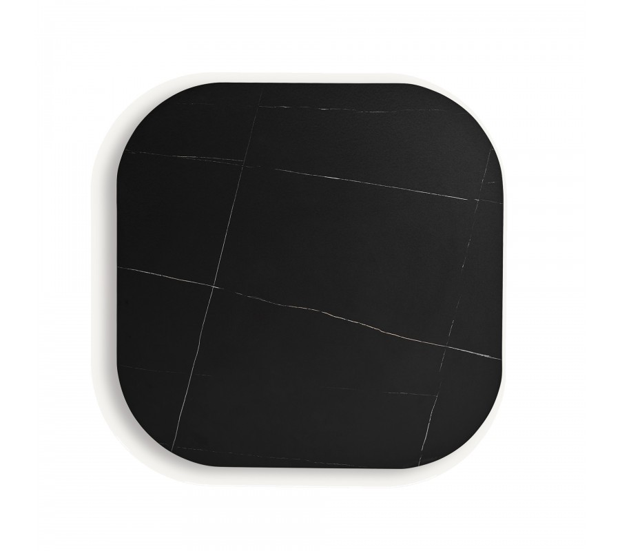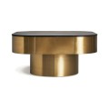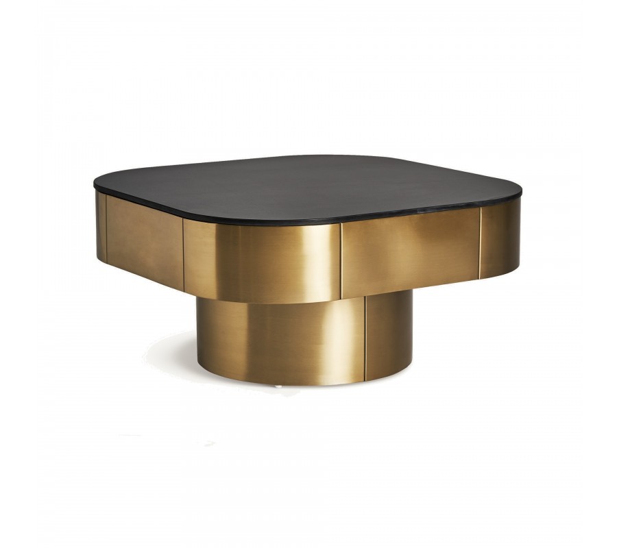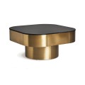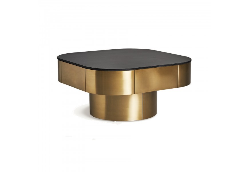 Luxusný glamour štvorcový konferenčný stolík Jackson s jednou nohou s mramorovou doskou so zaoblenými rohmi čierna zlatá 100 cm