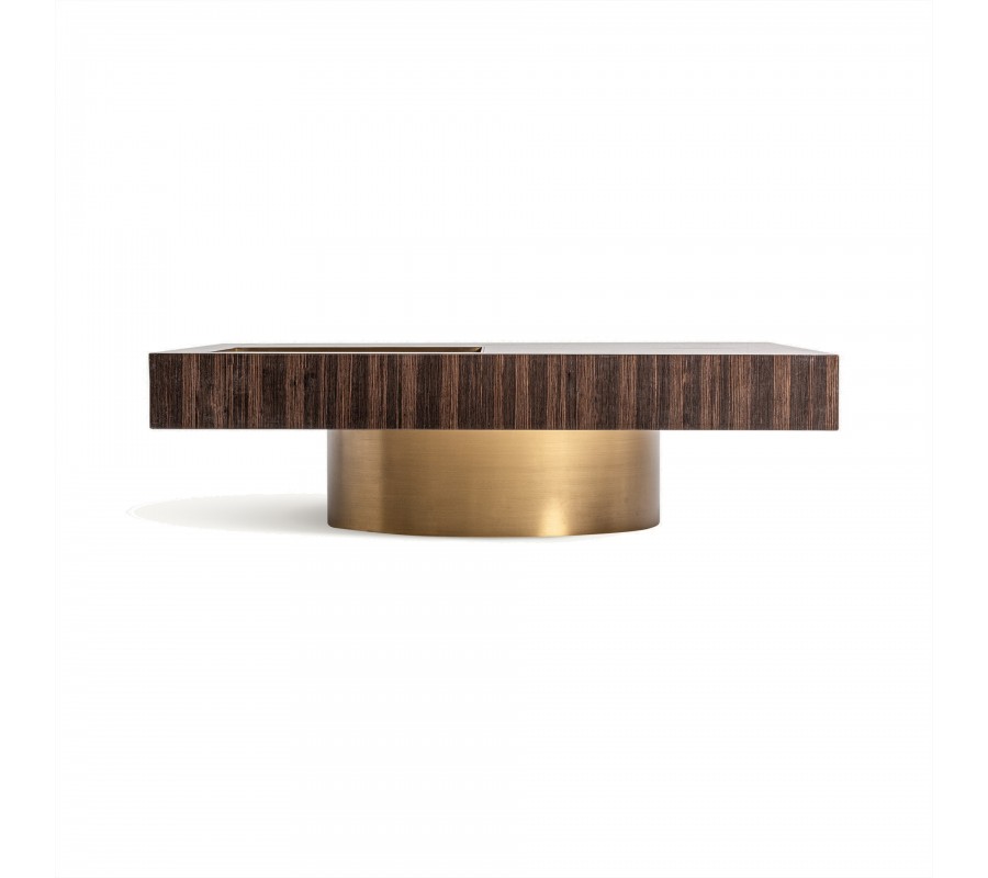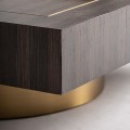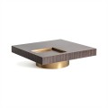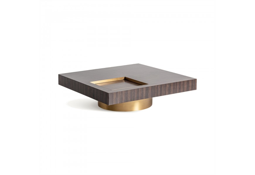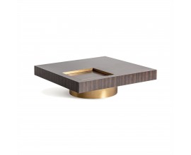 Luxusný drevený konferenčný stolík Lea v art deco štýle v hnedej farbe so zlatou kovovou konštrukciou s glamour nádychom 110 cm