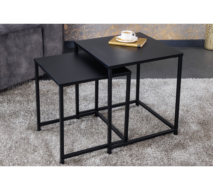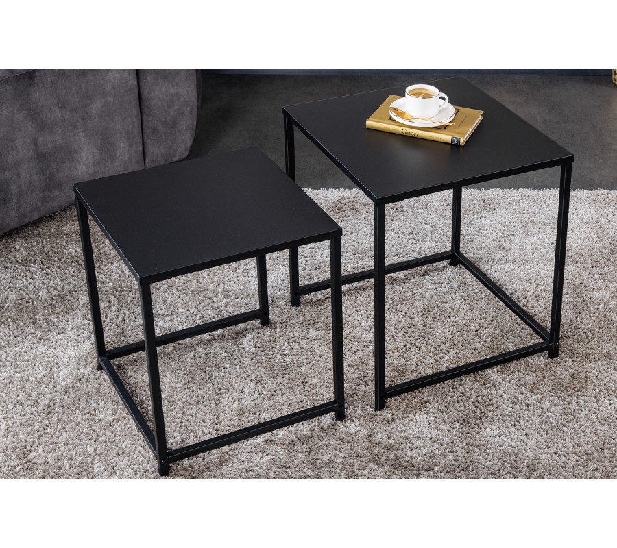 Industriálny set dvoch čiernych štvorcových konferenčných stolíkov Industria Durante 46 cm