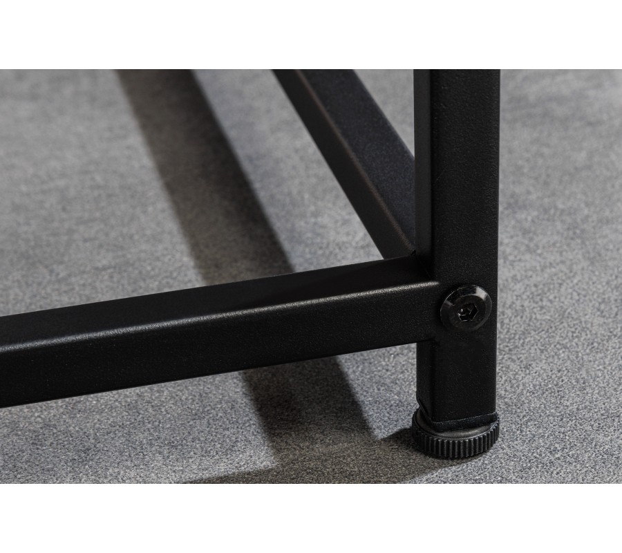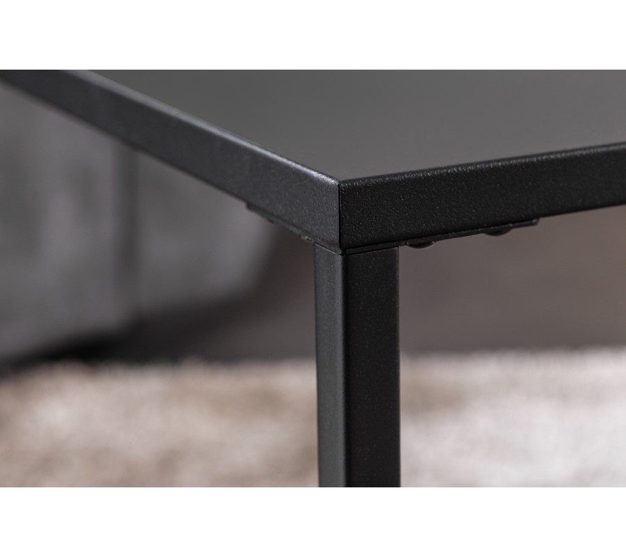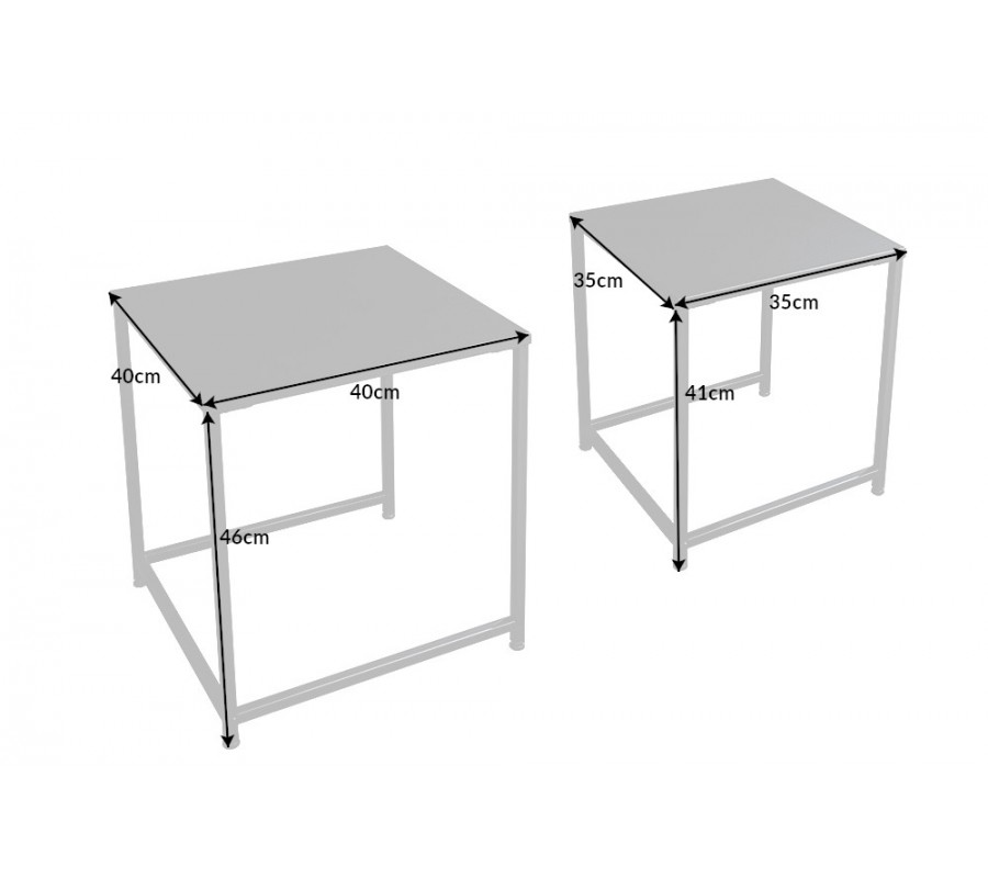 Dizajnový konferenčný stolík v industriálnom štýle v štvorcovom tvare je doplnený ďalším stolíkom v menšej forme, ktoré sa vzájomne šikovne dopĺňajú. Menší stolík sa jednoducho uloží pod ten väčší, čo umožňuje ich využitie v rôznych veľkostných priestoroch a tiež udržuje ich usporiadané.
