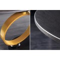 Okrúhle zlaté otočné nožičky nie sú len štýlovým doplnkom, ale aj funkčným riešením. Ich polohovateľná a rozkladacia funkcia umožňuje ľahkú prispôsobiteľnosť stolíka podľa potreby. Okrem toho, že sa dajú otáčať, majú aj kruhový tvar, čo pridáva do celkového dizajnu stolíka ďalší estetický rozmer a dotvára jeho eleganciu.