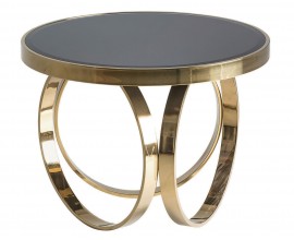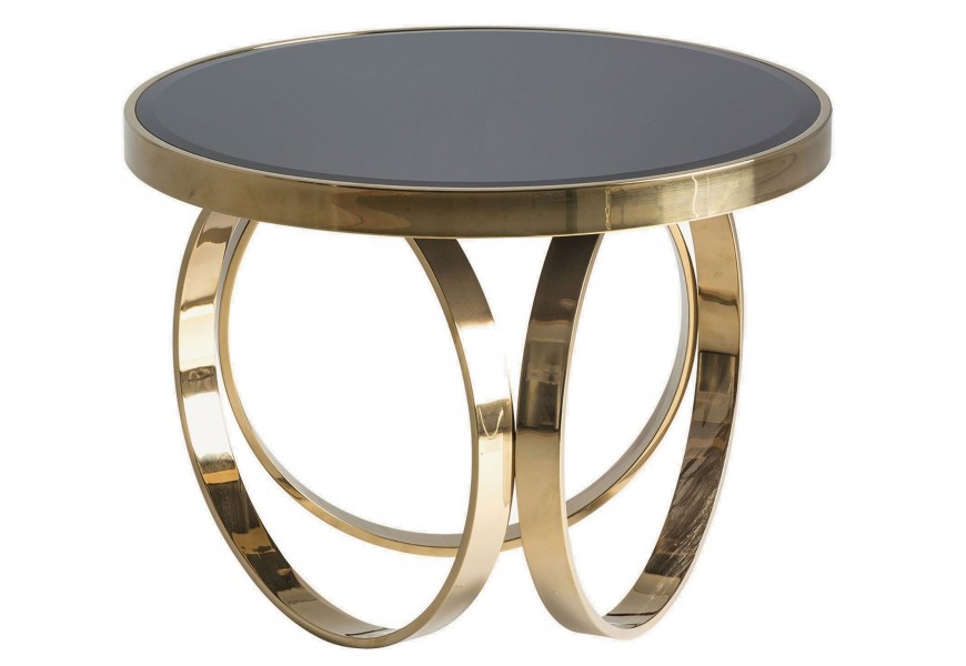 Luxusný art deco okrúhly konferenčný stolík Arossia s dizajnovou podstavou v tvare troch obručí čierna zlatá 60 cm