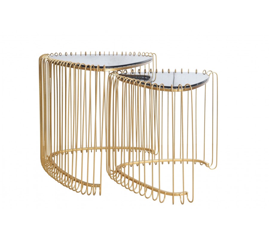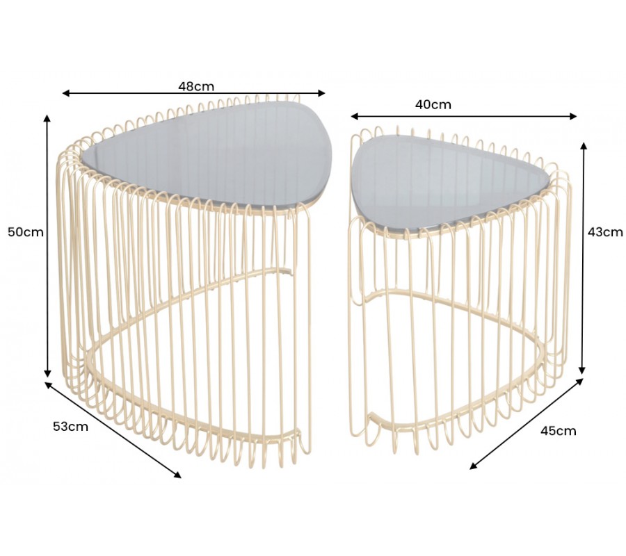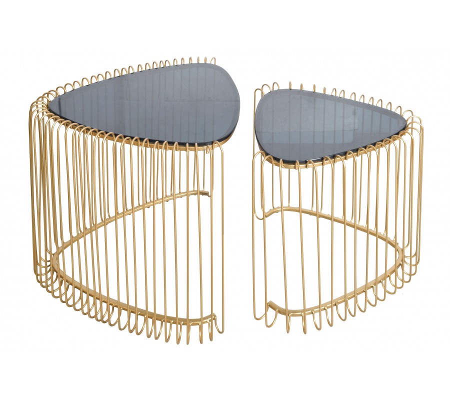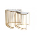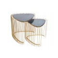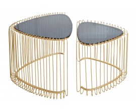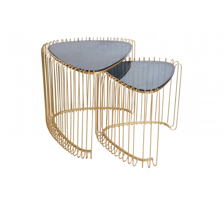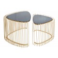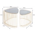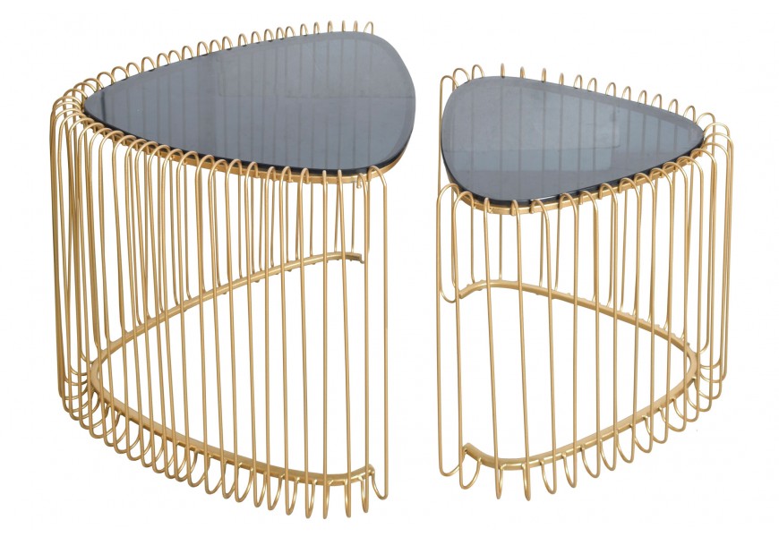Set trojuholníkových konferenčných stolíkov Esme v art deco štýle so zlatou kovovou podstavou s klietkovým dizajnom 50 cm