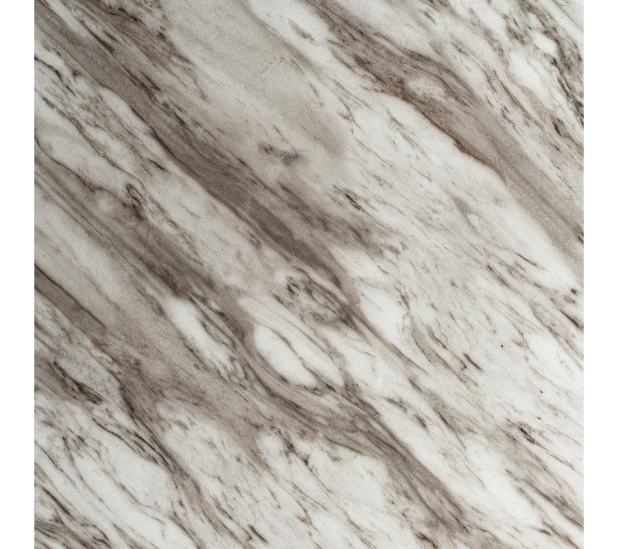 Vrchná doska s mramorovým dizajnom skvele dopĺňa podstavu stola. Na bielom pozadí sa odvíja sivá kresba kameňa, ktorá ešte zdôrazňuje exkluzívny charakter stolíka. Je vyrobená zo syntetického mramoru, ktorý je obľúbený kvôli svojej pevnosti, odolnosti a podmanivému vizuálu. Tento materiál zároveň nie je náročný na údržbu.