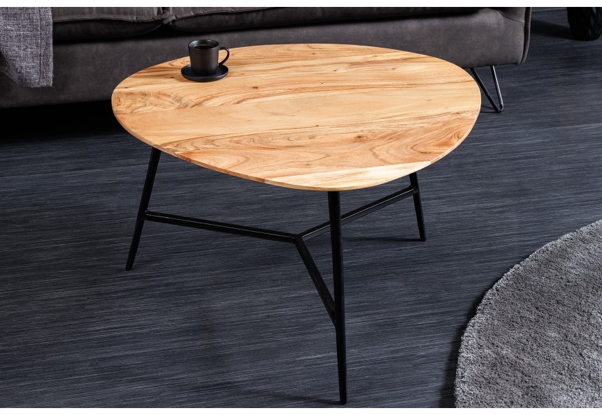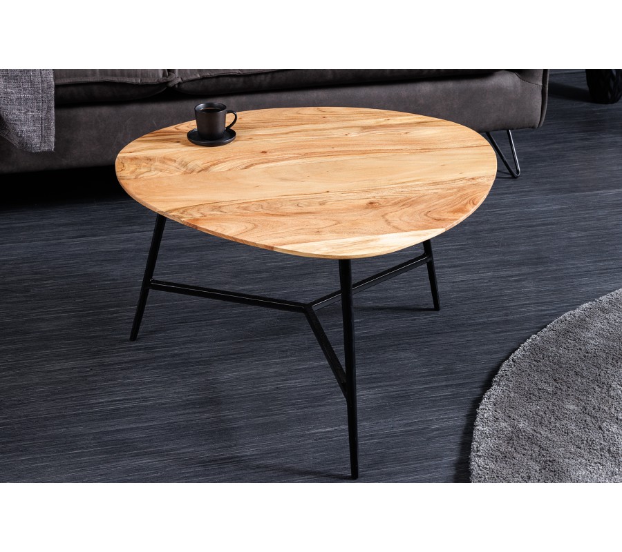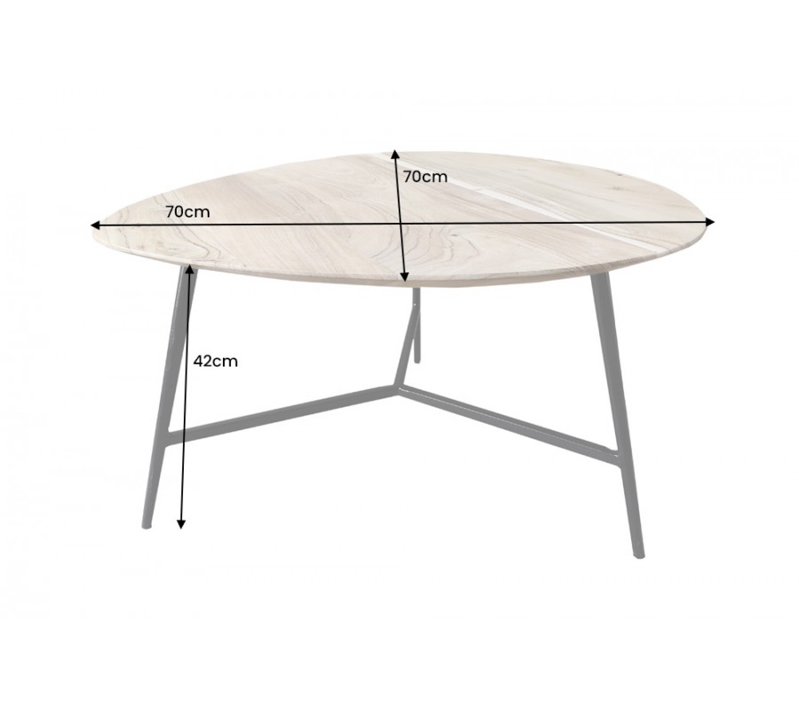 Dizajnový masívny trojuholníkový konferenčný stolík Dalbergio s doskou z akáciového dreva svetlá hnedá 70 cm