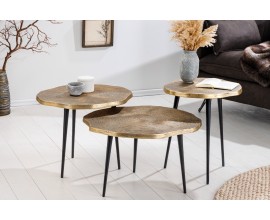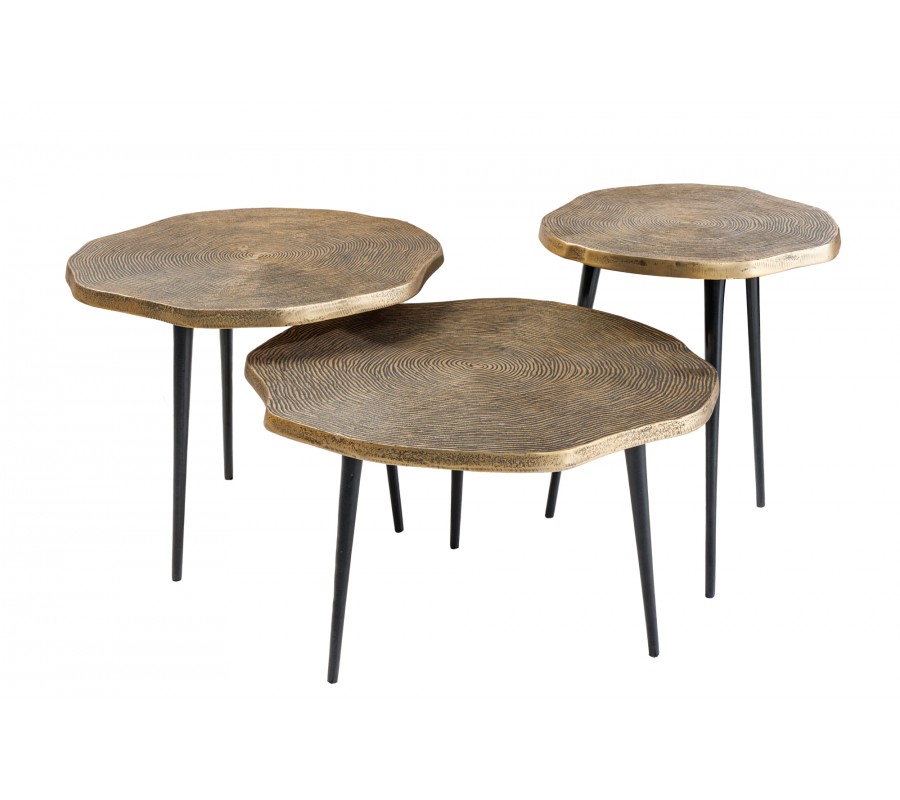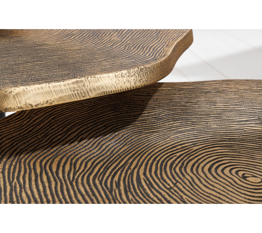 Dizajnová art deco sada troch konferenčných stolíkov Fabiosa so vzorom letokruhov v zlatej a čiernej farbe 49 cm