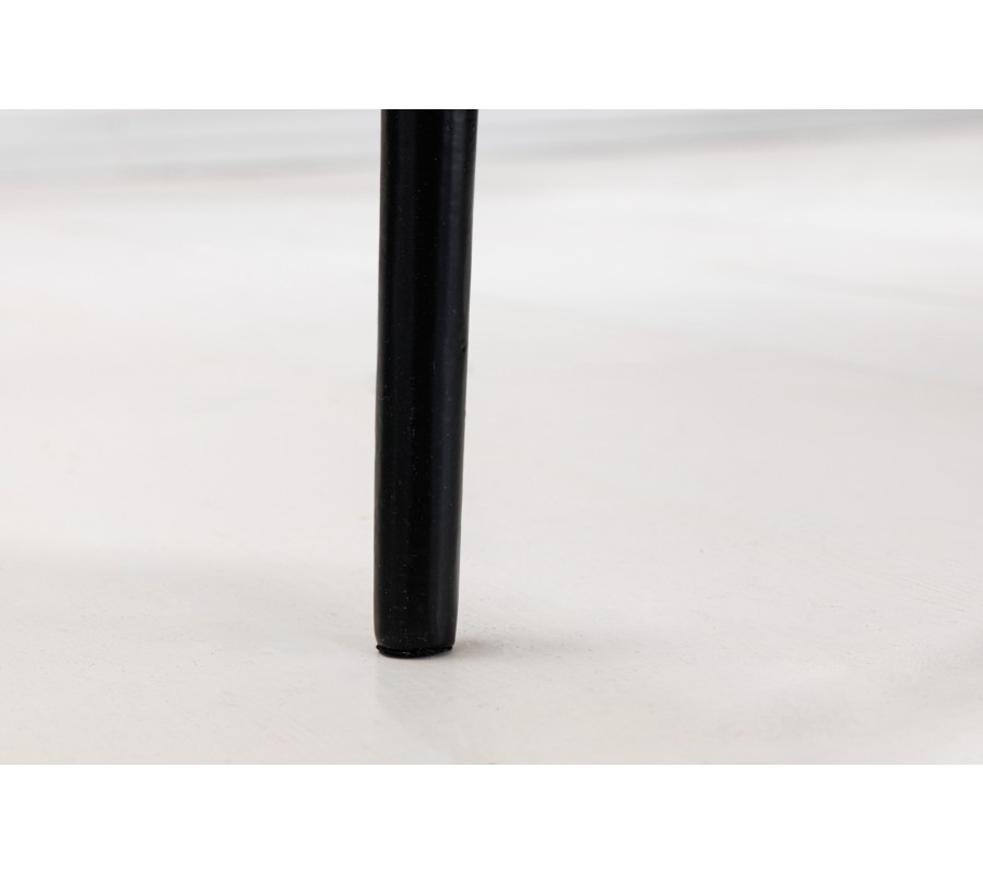 Vrchná doska je vyrobená z kovovej zliatiny a zošikmené nožičky sú kovové, s matným práškovým nástrekom v čiernej farbe. Zlatá kovové časti sú zámerne zostarnuté, čo mierne znižuje ich lesk a dodáva nábytku šarmantný vintage charakter.