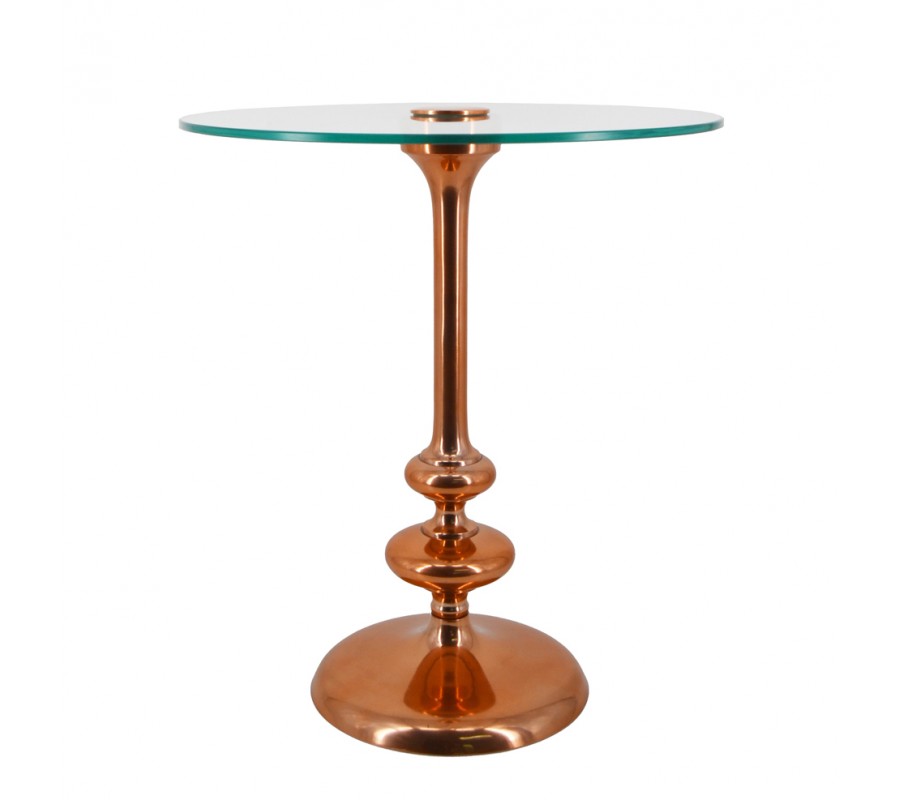 Štýlový art deco konferenčný stolík Malta s medenou nohou a sklenenou doskou s glamour nádychom 56 cm