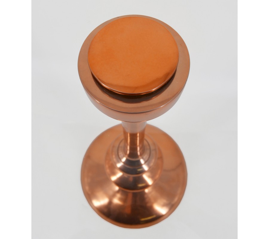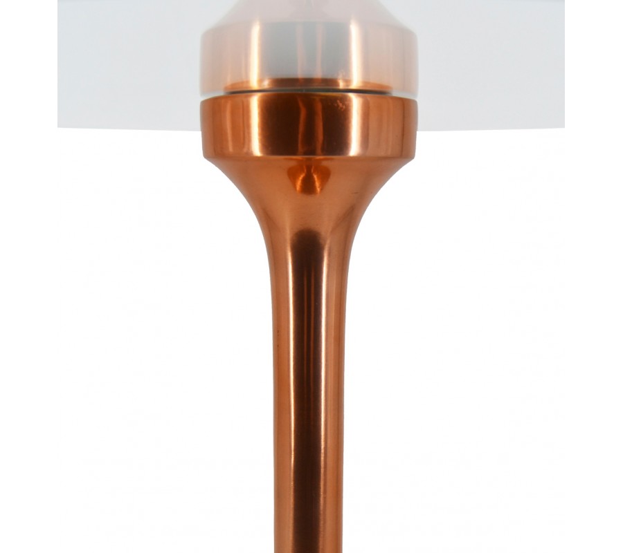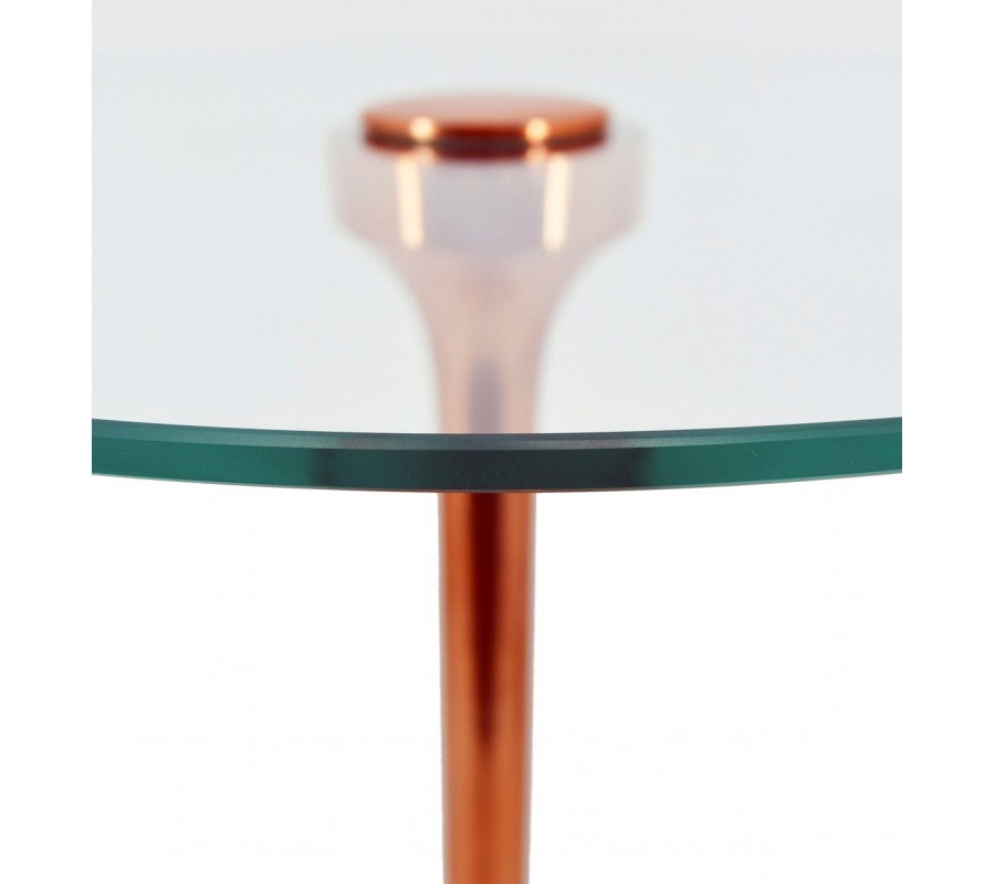 Dizajnový konferenčný stolík Malta je výrazný štýlový kúsok do vašej obývačky. Dominantou stolíka je jeho výrazná noha, ktorá dodáva celkovému dizajnu art deco nádych. Noha je oblého tvaru s orkúhlou podstavou , nad ktorou sa nachádzajú dva kruhové detaily. Detaily pripomínajú bubliny, ktoré sa vytvorili za zohriatia kovu. Jej povrch je medenej farby s výrazným leskom. Doska stolíka je okrúhleho tvaru zo skla, ktorá je v strede pripevnená o nohu, vďaka ktorej sa na vrchu dosky nachádza okrúhly medený detail.