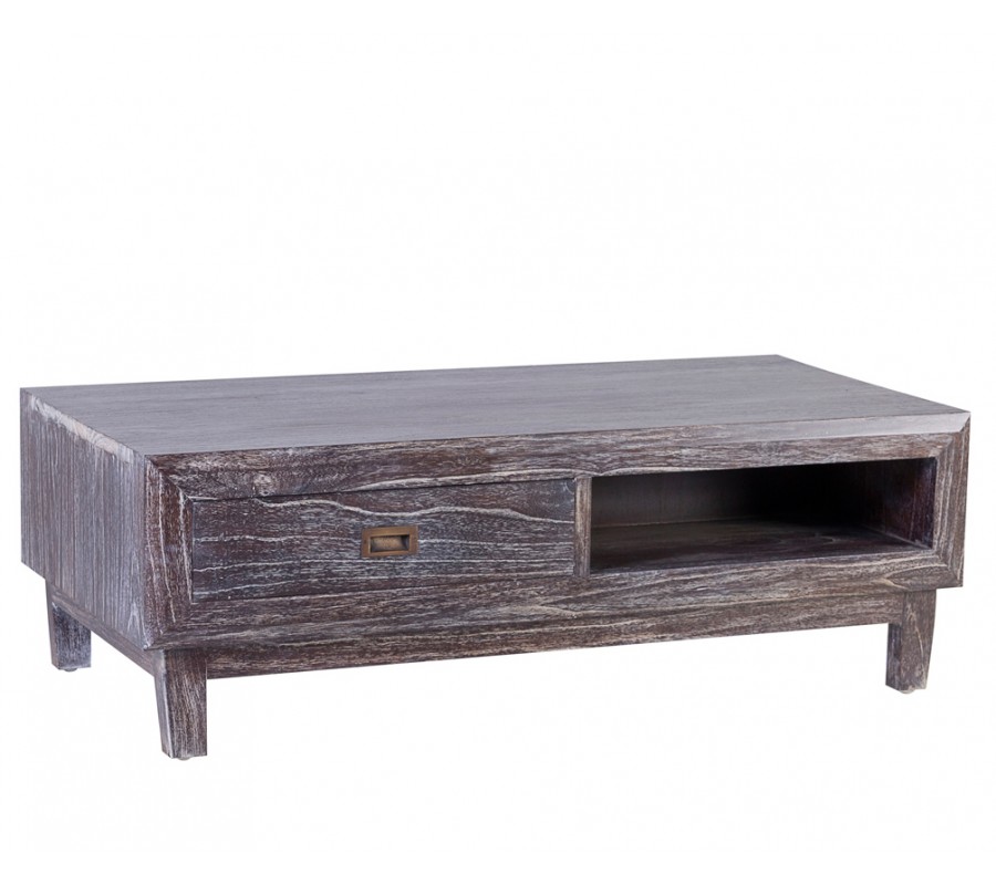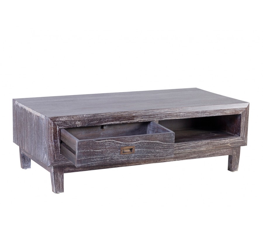 Štýlový masívny obdĺžnikový konferenčný stolík Sindoro v hnedej farbe so zásuvkou 120 cm