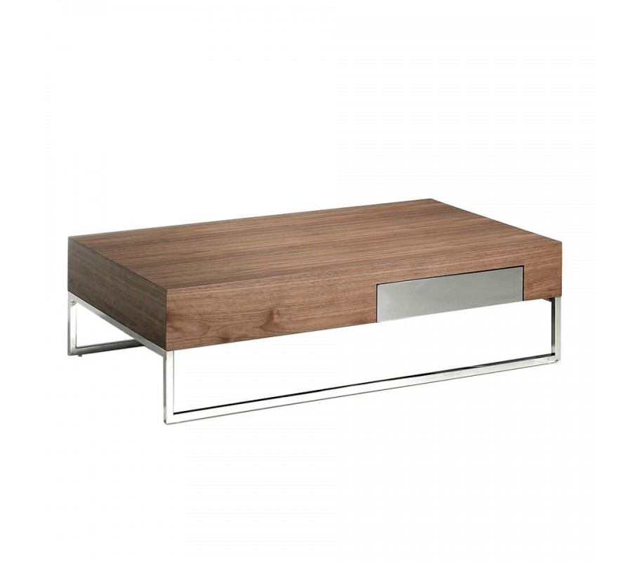 Luxusný chrómový obdĺžnikový konferenčný stolík Vita Naturale s orechovou hnedou vrchnou doskou a zásuvkou 120 cm