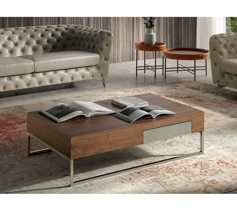 Konferenčný stolík Vita Naturale prinesie do vašej obývačky štýlový minimalizmus. Drevo a lesklý chróm vytvárajú elegantnú kontrastnú estetiku, typickú pre súčasný taliansky dizajn, ktorý dodá priestoru nádych moderného luxusu.