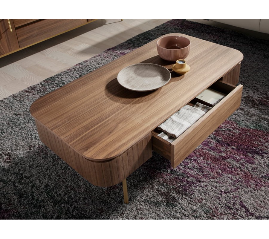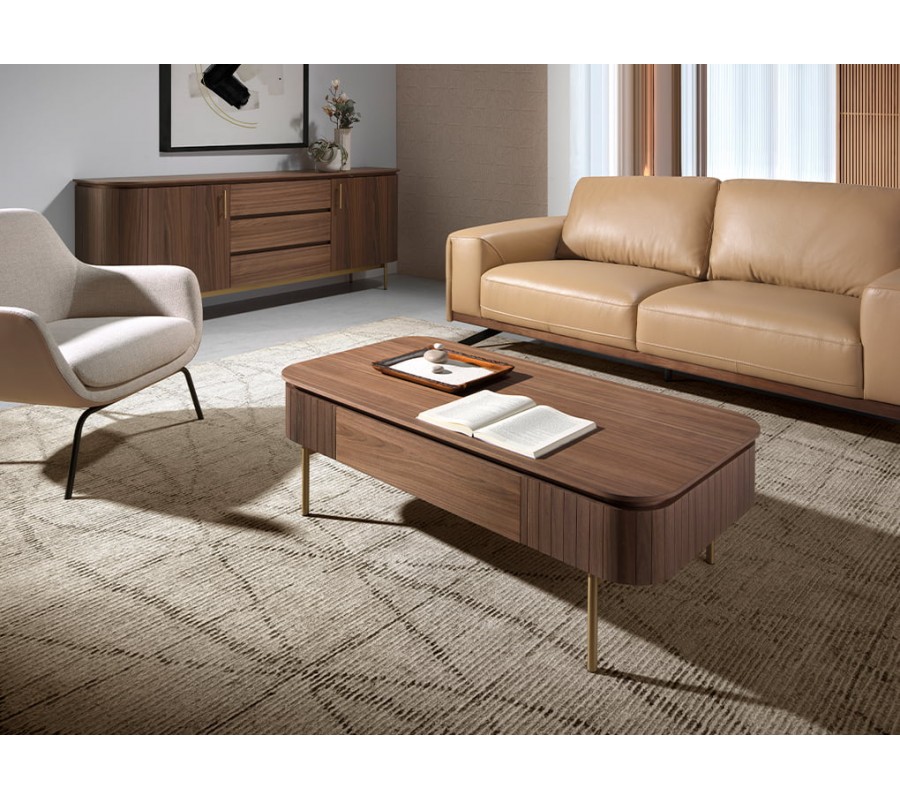 Konferenčný stolík Vita Naturale spája minimalistický štýl s elegantnými prvkami art deco estetiky. Súčasný taliansky dizajn vyzdvihuje krásu orechového dreva a do vašej obývačky prinesie moderný vizuál s nádychom tepla a prírodnej harmónie.