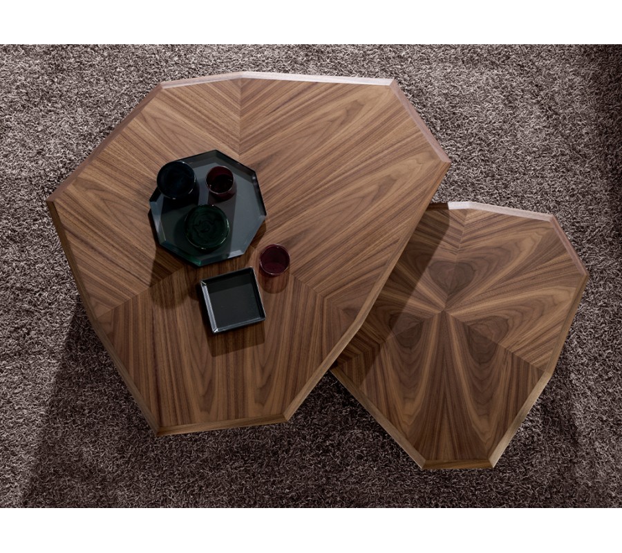 Luxusný moderný konferenčný stolík Vita Naturale z hnedého orechového dreva s dizajnovou vrchnou doskou atypického tvaru 32 cm