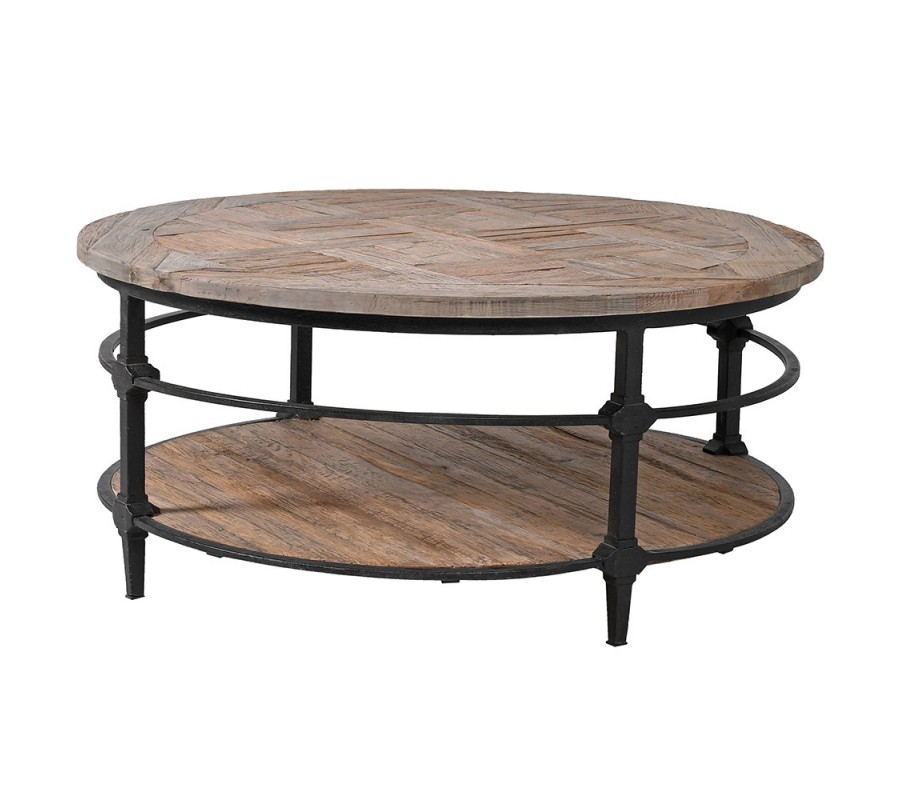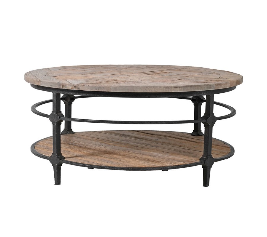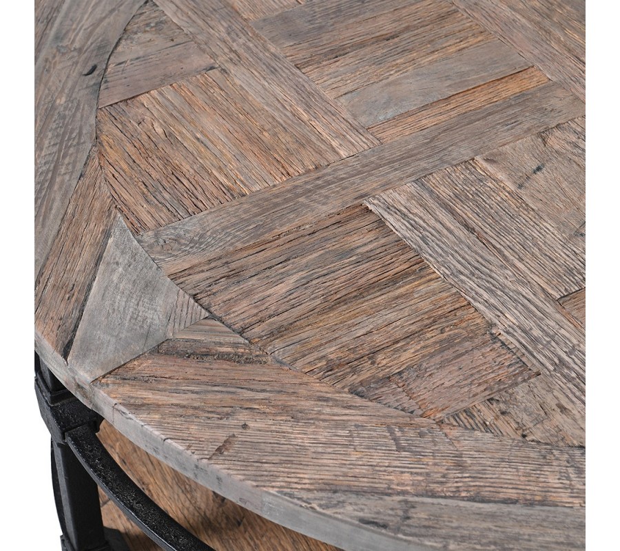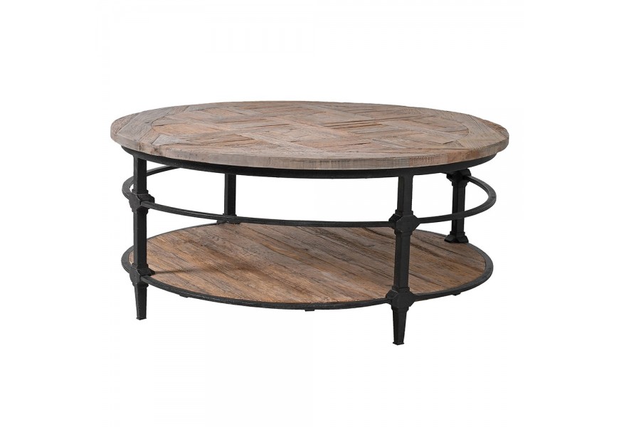 Luxusný štýlový okrúhly rustikálny konferenčný stôl Sanifa s kovovou čiernou konštrukciou 100 cm