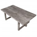 Štýlový moderný konferenčný stolík je skvelou voľbou do dizajnových obývačiek. Konferenčný stolík je vyrobený z masívneho dreva s povrchovou úpravou v šedom tóne, ktorý sa nesie v prírodnom a nadčasovom vzhľade pripomínajúcom starožitný alebo opotrebovaný vzhľad. Na prvý pohľad pripomína cement alebo betón. Stolová doska má hladký povrch a hrubší profil. Nožičky stola majú geometrický, hranatý tvar so širokými obdĺžnikovými líniami. Nožičky sú pevne spojené rámovou konštrukciou, pričom tvoria uzavretý obdĺžnikový rám, ktorý je prepojený a stabilizovaný vodorovnými a zvislými prekríženiami.