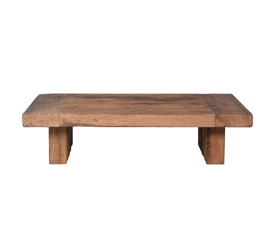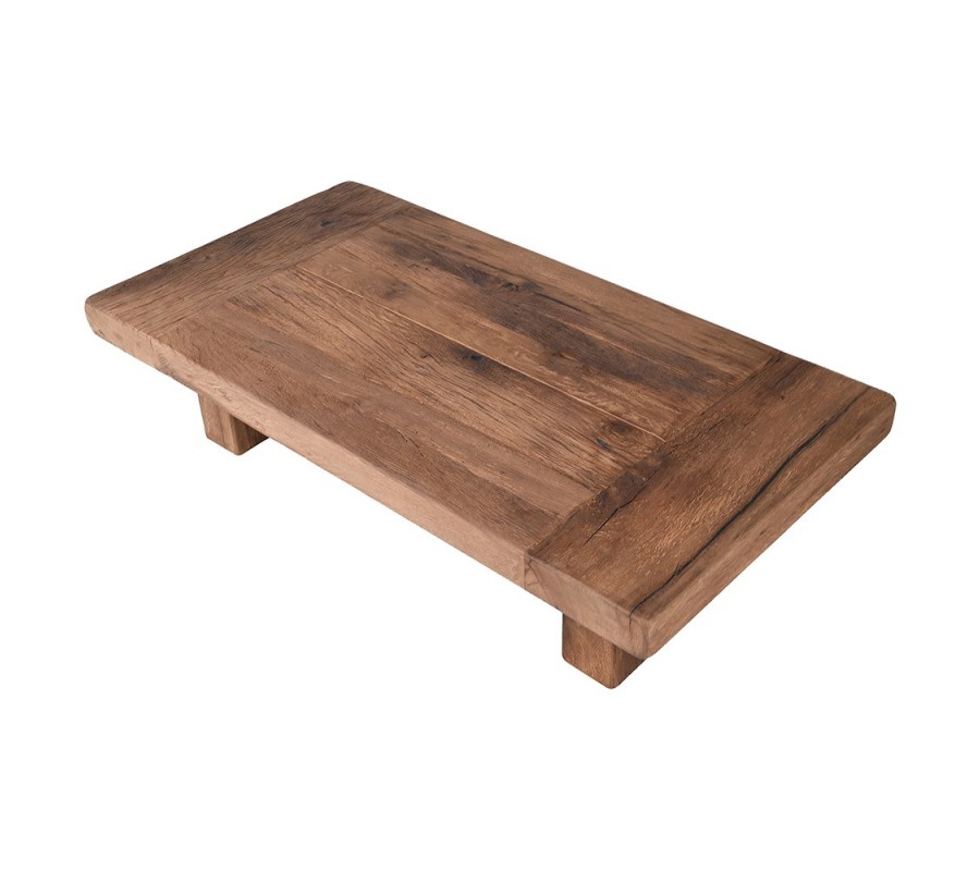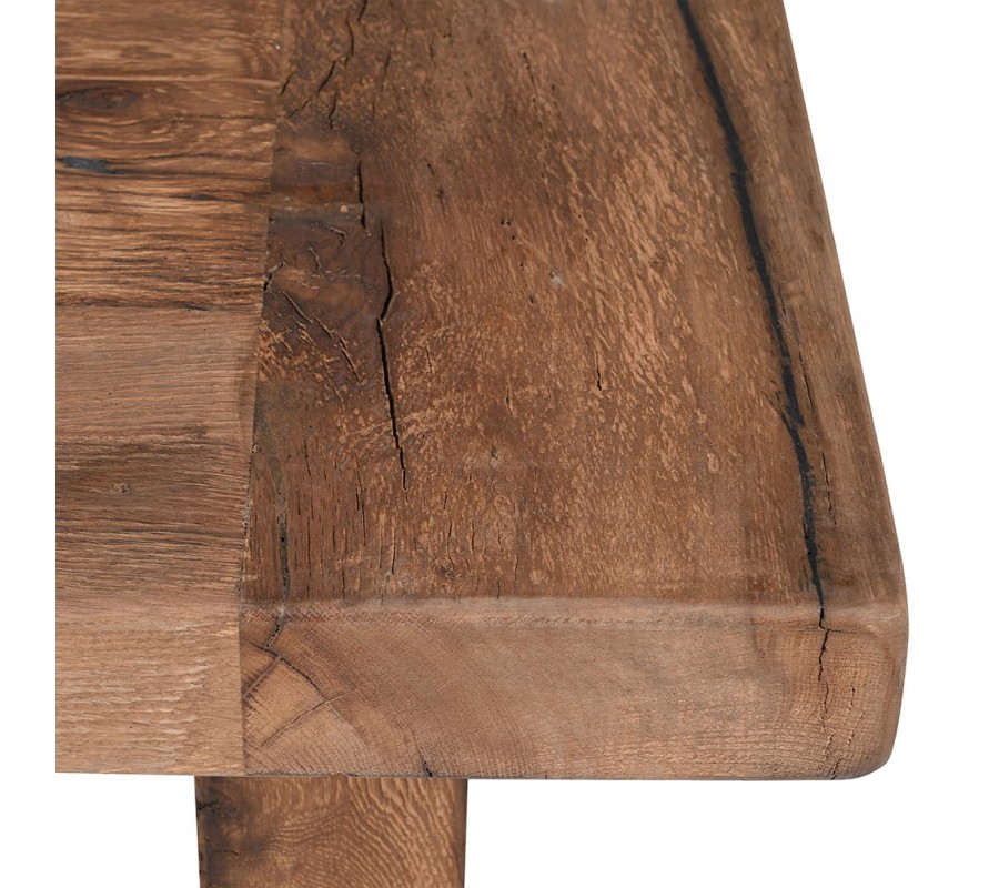Jednoduchá geometrická kompozícia necháva naplno vyniknúť krásu prírodného materiálu. Stolík je vyrobený z recyklovaného dubového dreva, ktoré prináša do dizajnu unikátny charakter a vintage nádych. Použitie recyklovaných materiálov je šetrné k životnému prostrediu a zároveň zaručuje originalitu každého kusu.