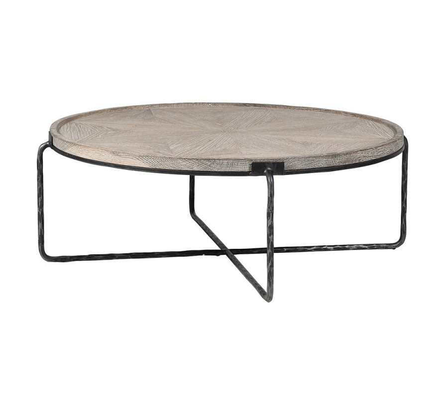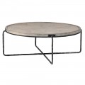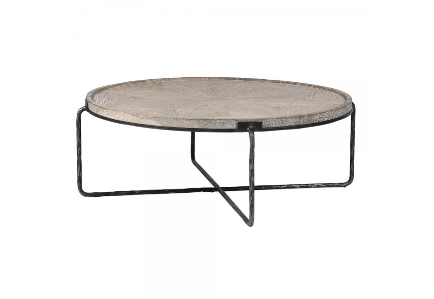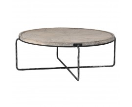 Luxusný industriálny okrúhly konferenčný stolík Polaris s vrchnou doskou z pieskovaného dreva v béžovej farbe 100 cm
