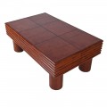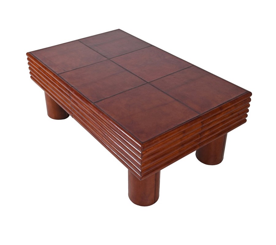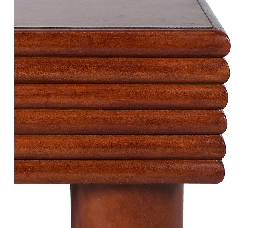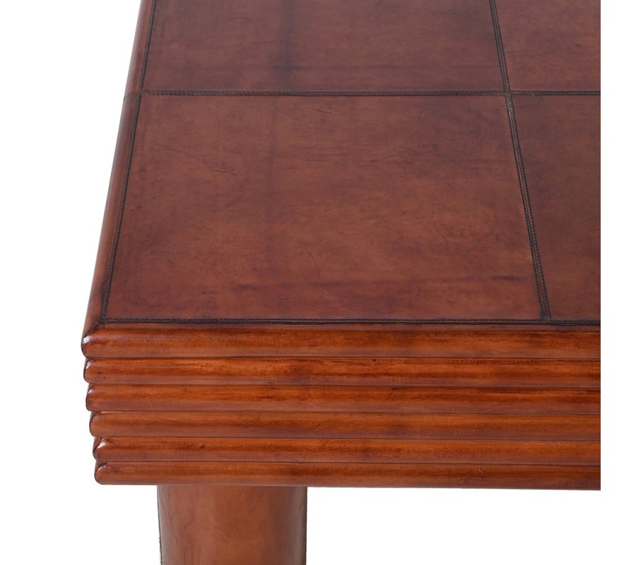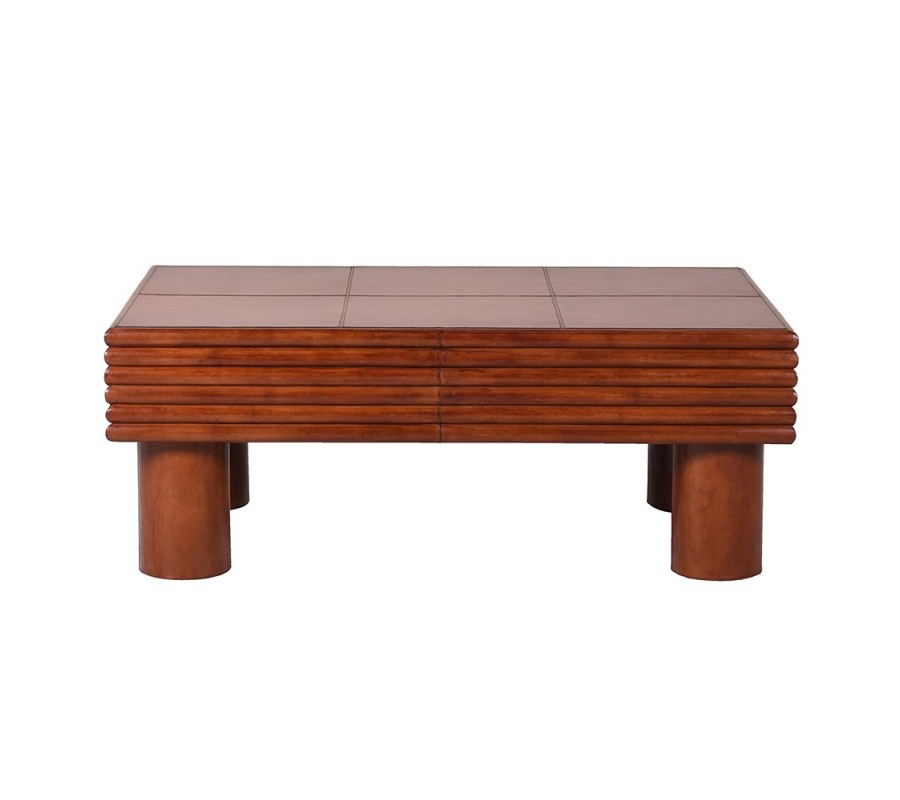Luxusný obdĺžnikový koloniálny konferenčný stolík Vivid s koňakovým hnedým koženým poťahom a rebrovaným dizajnom 75 cm