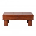 Luxusný konferenčný stolík Vivid v koloniálnom štýle je navrhnutý s dôrazom na detailné prešívanie poťahu a výrazný tvar. Stolík má obdĺžnikovú vrchnú dosku s robustným, mohutným prevedením a drážkovaným dizajnom na bokoch, ktoré okamžite upútajú pozornosť. Bočné hrany sú zložitého tvaru, čo dodáva stolíku jedinečný charakter a eleganciu.