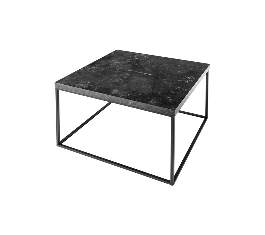 Už na prvý pohľad upúta jednoduchým štvorcovým tvarom a vzdušnou kovovou konštrukciou, s čiernou matnou povrchovou úpravou typickou pre industriálny štýl. Konštrukcia sa skladá so štyroch štíhlych nožičiek, na spodnej časti spojených štvorcovým rámom. Ten nielenže zabezpečuje pevnosť a stabilitu stolíka, ale zároveň harmonicky dopĺňa jeho celkový dizajn.