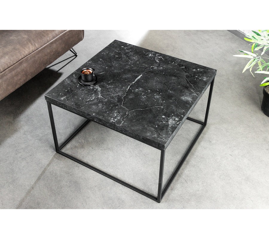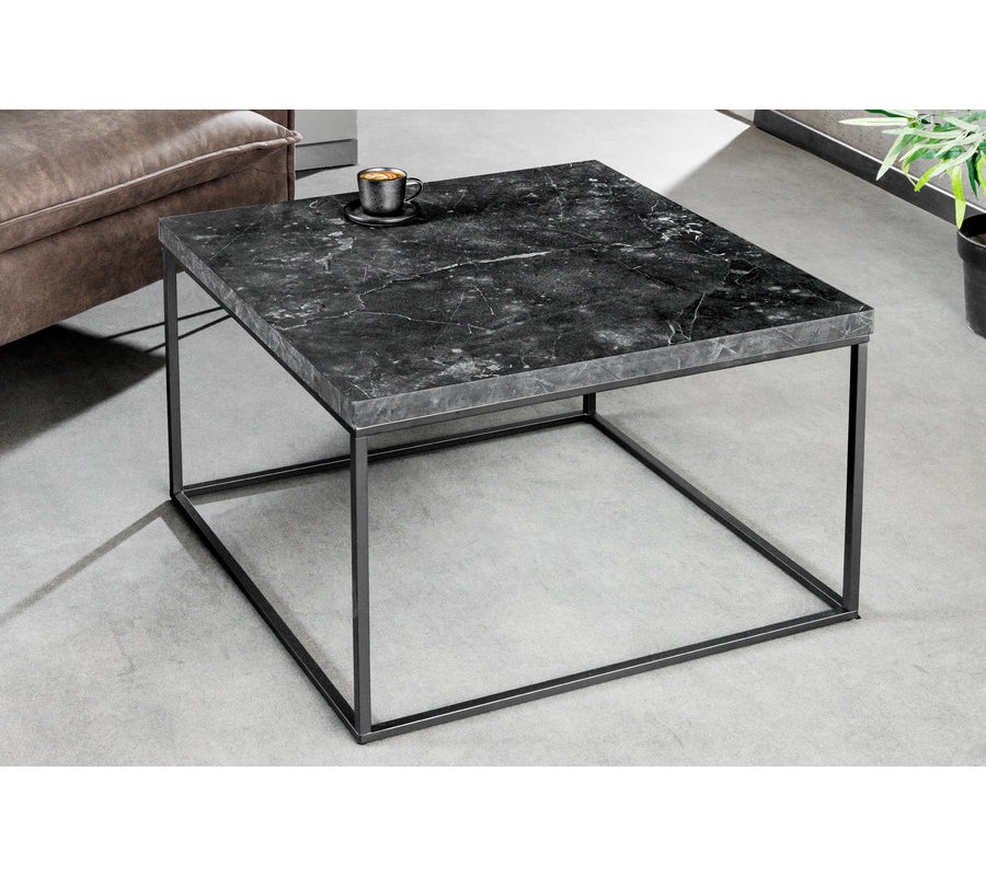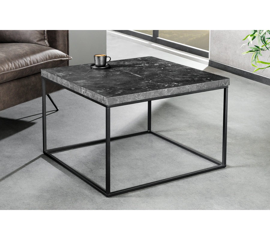 Štýlový industriálny konferenčný stolík Architect s čiernou kovovou konštrukciou a antracitovým mramorovým dizajnom 60cm